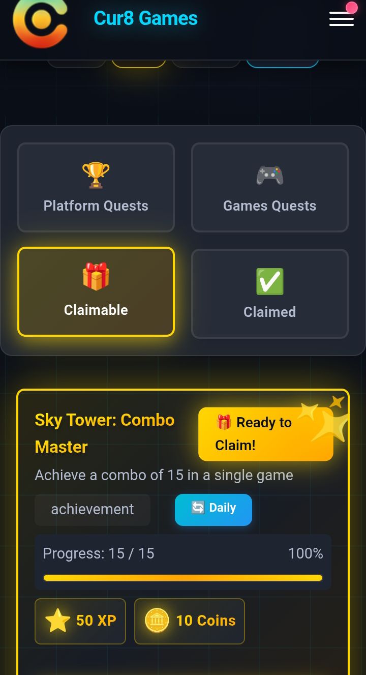 My Cur8 Gaming Journey so far. How to rank higher on Sky Tower 🤔