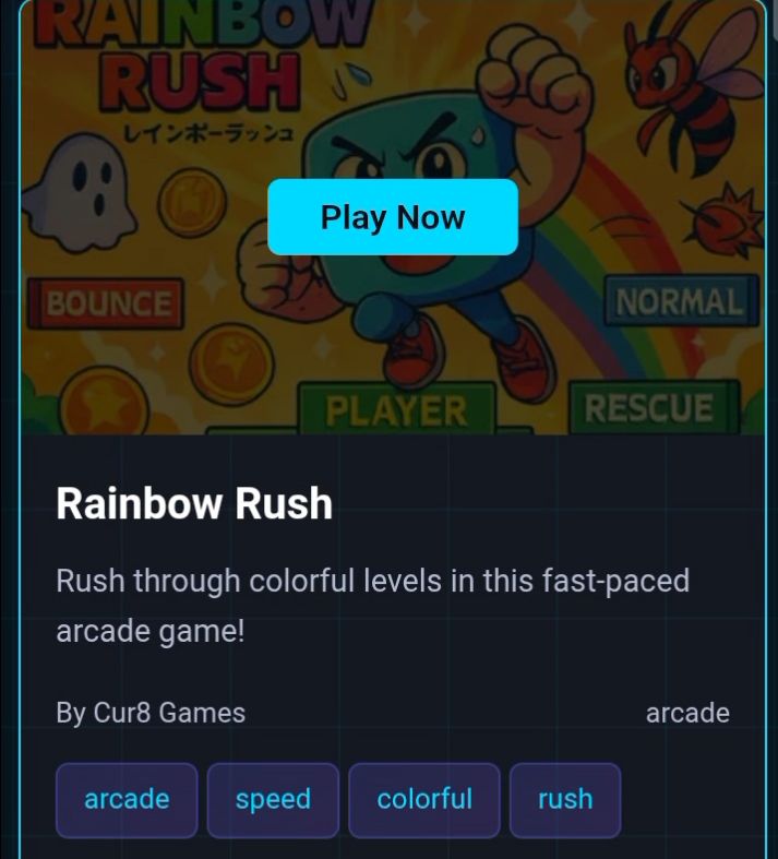 Then I browsed the platform's library and passed some games of interest like Space Shooter and Merge Tower Defense. "Rainbow Rush" caught my eye, so I chose that game. But I was on a loading screen because my Internet connection was getting poor.