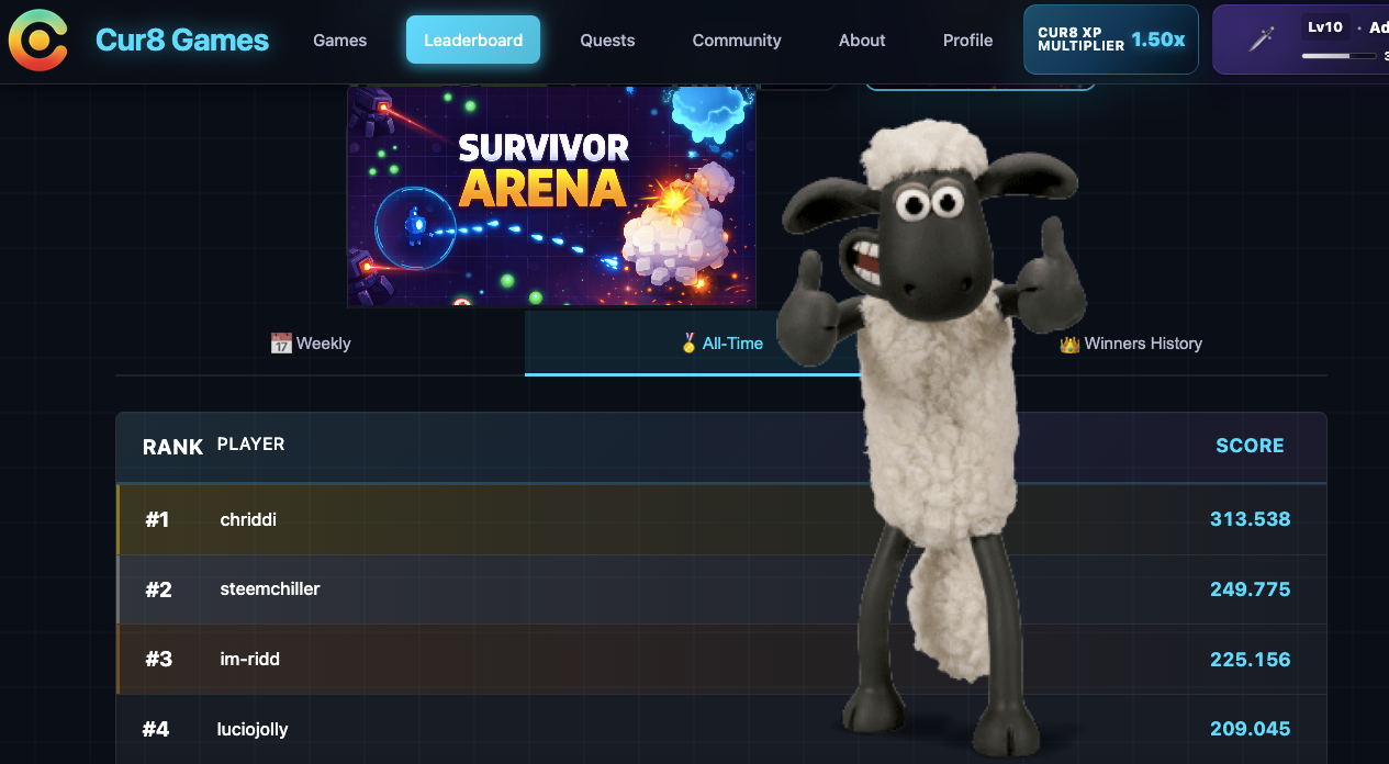 Na ja, die Arena hat mich nicht gepackt, lieber ab und zu ne Runde Steem Heights - ist gemütlicher.