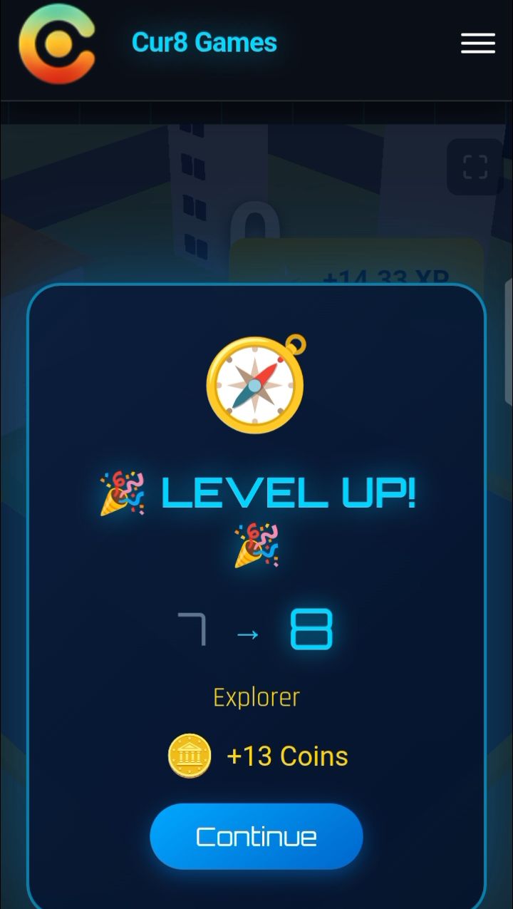 My Gaming Journey on Cur8 Games 🎮 Level 8 Explorer Achieved
