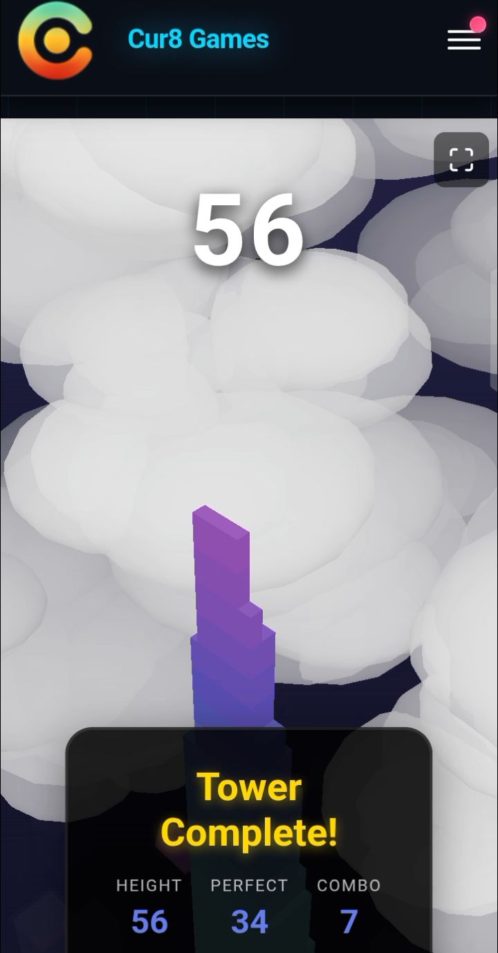 Game 4 was to a height 56 with 34 perfect blocks and 7 combo, earning me 13.20 XP.
