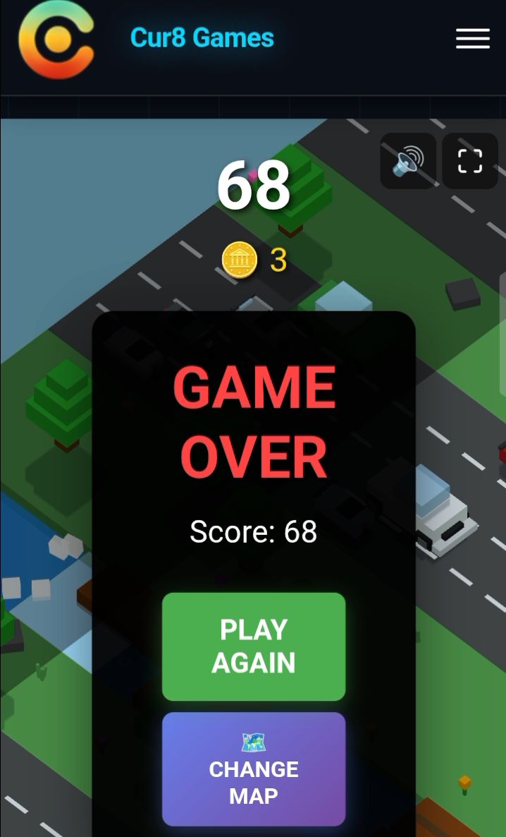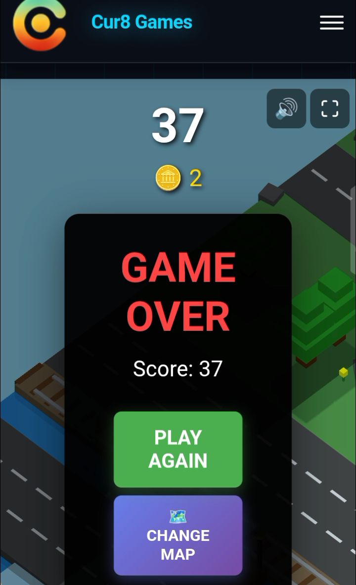 It's an infinite runner game where you the player is a voxel character that has to be dodging cars and crossing water to avoid dying.