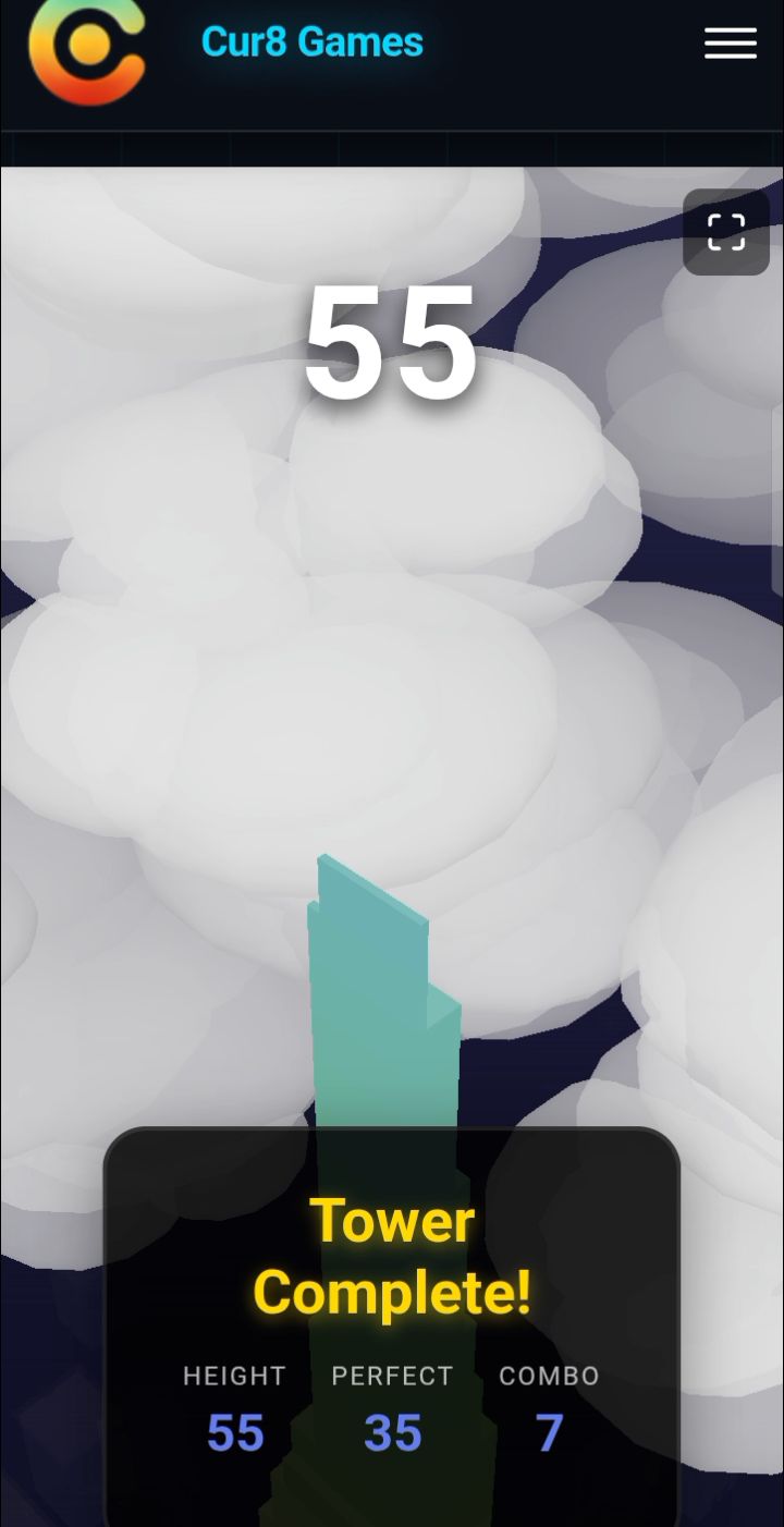 For Game 1, I played to a height of 55 with 35 perfect blocks and earned 13.12 XP.