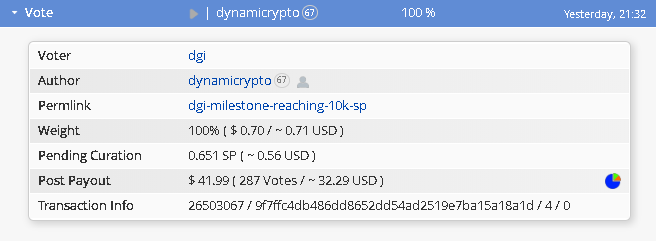 Don't forget to check out @dgi with 10,000 SP. Joining the @dynamicsteemians curation trail and delegating to @dgi has never been so rewarding. Click the link in my profile to learn more.
