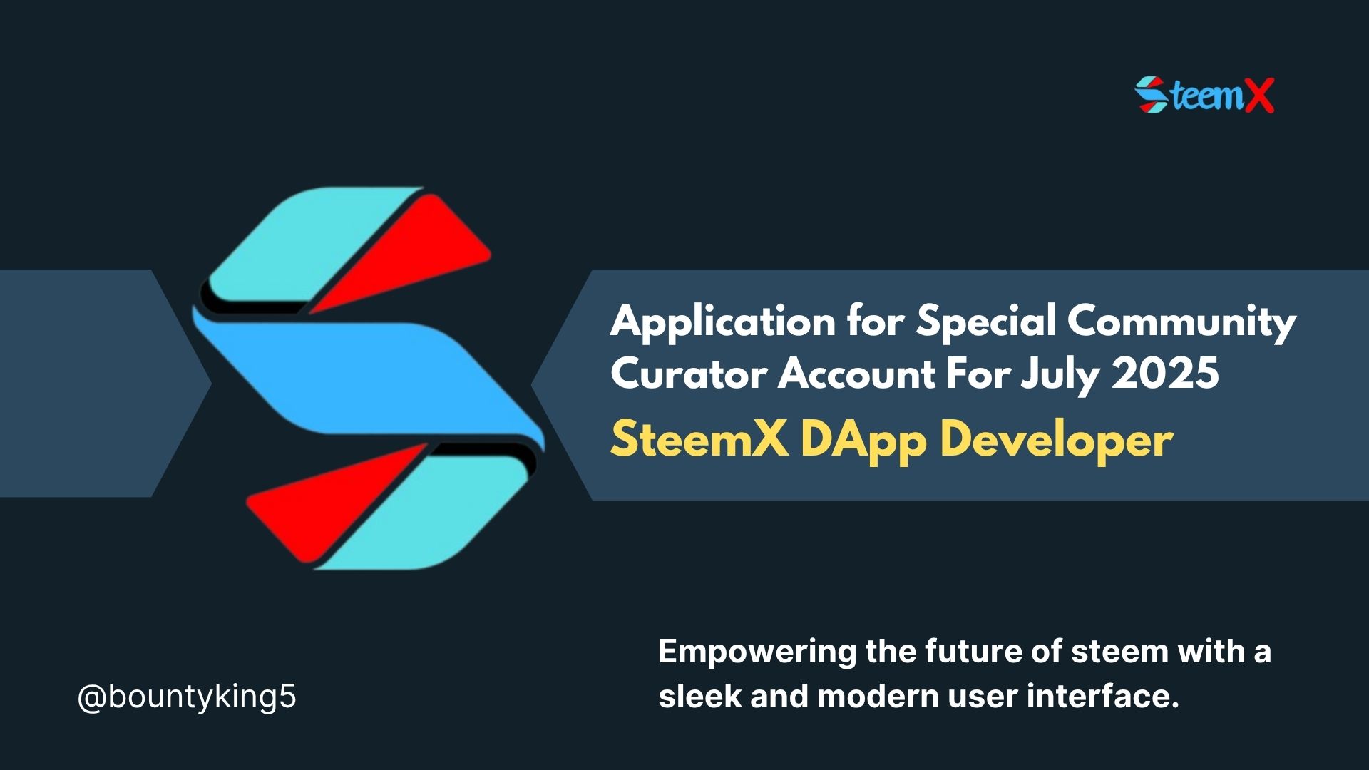Application for Special Community Curator Account For July 2025 - SteemX DApp Developer