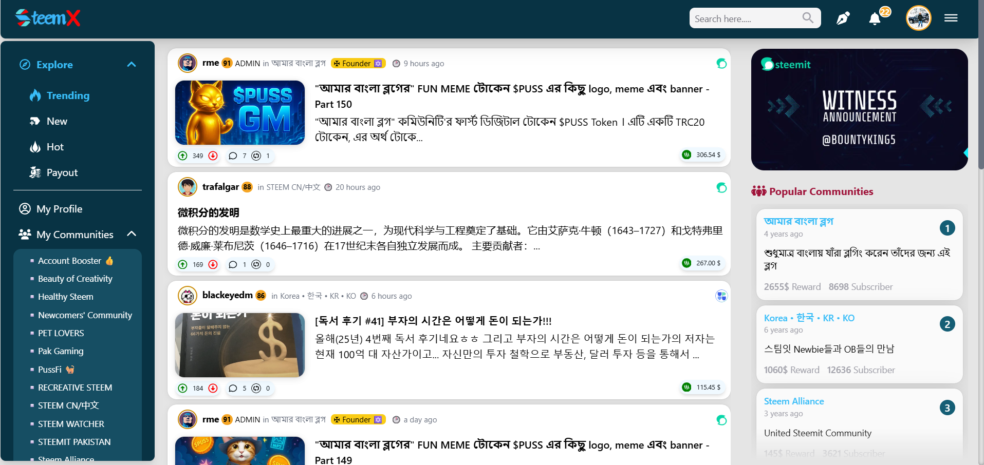 The working mechanism of SteemX is slightly different from Steemit. We do not rely directly on HiveMind, Instead we use the SDS API which is comparatively faster than the standard Steemit Condenser APIs. This helps in improving speed and response time even when other interfaces might be slow or partially unresponsive.