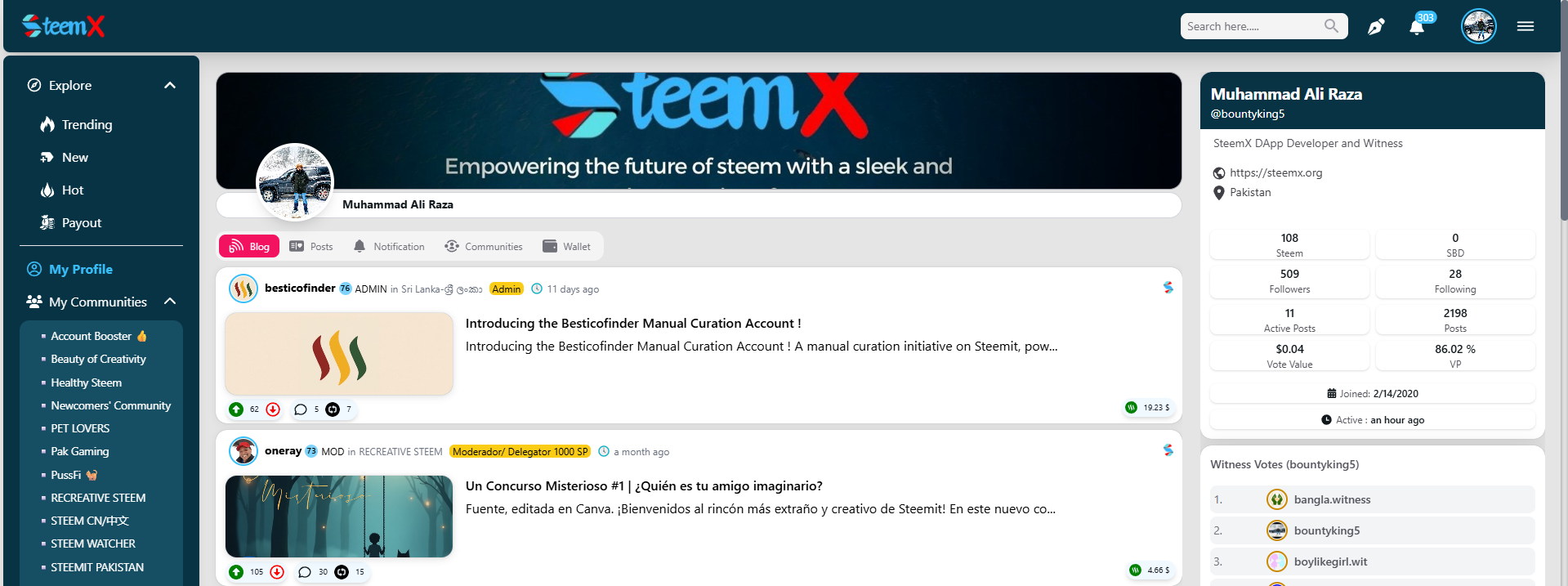 I am Muhammad Ali Raza, known on Steemit as @bountyking5. I’m a blockchain developer focusing on the Steem ecosystem. Today, I am applying community curator for august to support content creators and expand engagement through our project SteemX.
