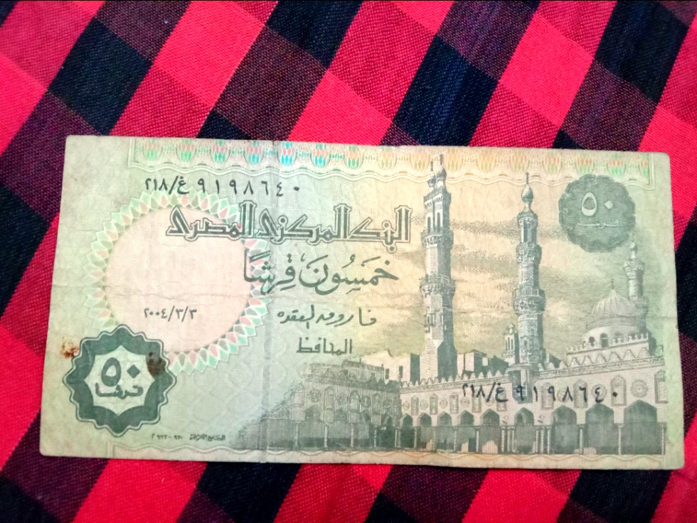- এটা আর পুরাতন একটা নোট। এটা আমার সংগ্রহে থাকা সবচাইতে পুরাতন এবং স্পেশাল একটা নোট। এই নোট টা হলো মিশরের একটা নোট। মিশরের মুদ্রার নাম পাউন্ড হলেও এটার উপর লেখা রয়েছে প্লাস্টরেস। যেটা পাউন্ড এর অন্য নাম বা পূর্বের নাম। এটা সম্ভবত ১৯৯০ সালের দিকের একটা নোট। এবং নোটের অবস্থা দেখেই বুঝছেন এর কী অবস্থা হা হা। এটা এইজন্যই আমি অনেক যত্মে রাখি। এই নোট টা আমার সংগ্রহে আসে ২০২১ সালে। এবং এটা মিশরের কেন্দ্রীয় ব্যাংক থেকে বের করা একটা নোট। এই নোটে সামান্য একটু ইংলিশ এর ব্যবহার করা হয়েছে। এবং বাকিটা সম্পূর্ণ আরবি। এর একপাশে দেওয়া রয়েছে একটা মসজিদ বা এই টাইপের কোন একটা স্থাপনা। এবং অন্যপাশে রয়েছে তাদের বিখ্যাত দেবতা আমুন খোদা এর ছবি। আমুন মিশরের প্রাচীন একটা খোদা। এছাড়া মিশরের ফেরাউন বা বাদশাদের প্রাচীন পোষাকও এটা। তারা বিভিন্ন বা বিশেষ দিনে এই পোষাক পরিধান করত। এটা আমার সংগ্রহে থাকা সবচাইতে মূল্যবান একটা নোট। এটা মিশরের ৫০ প্লাস্টরেস বা পাউন্ড।