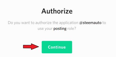 Press CONTINUE to authorize @steemauto to use your posting role.