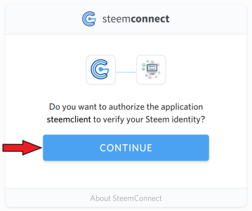 To verify your Steem indentiy, press CONTINUE.