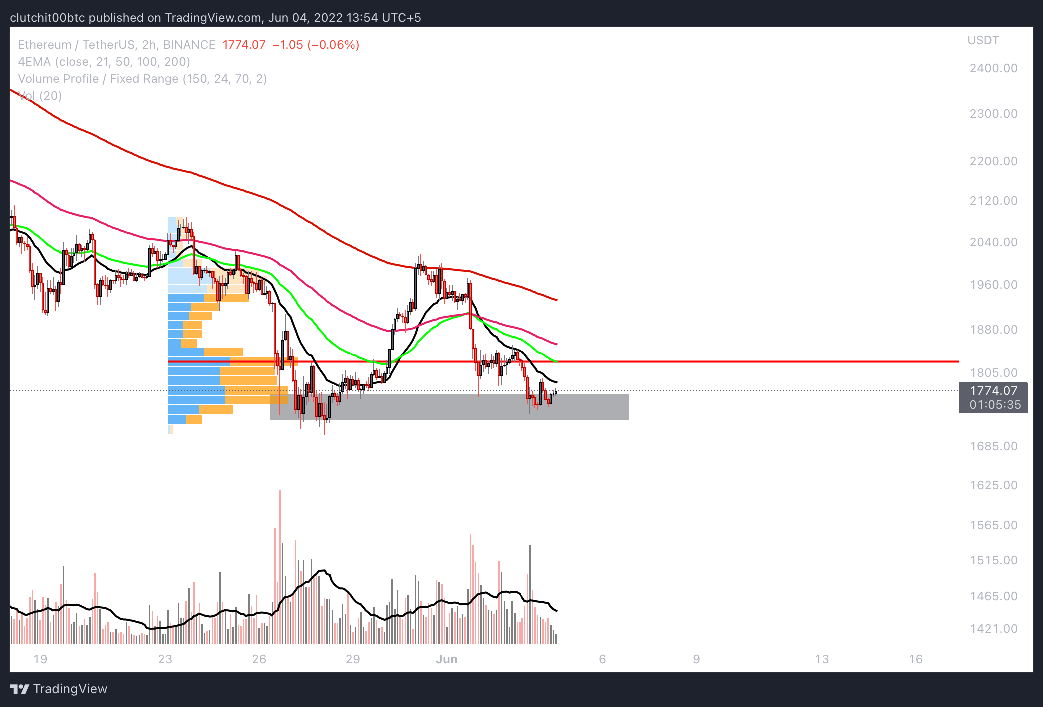 Price currently lying above a good support zone starting from $1793 till $1710 where we have had strong bounce-offs in the past. Expect some short-term reversal until the following important levels at $1835, $1940, and $2000.