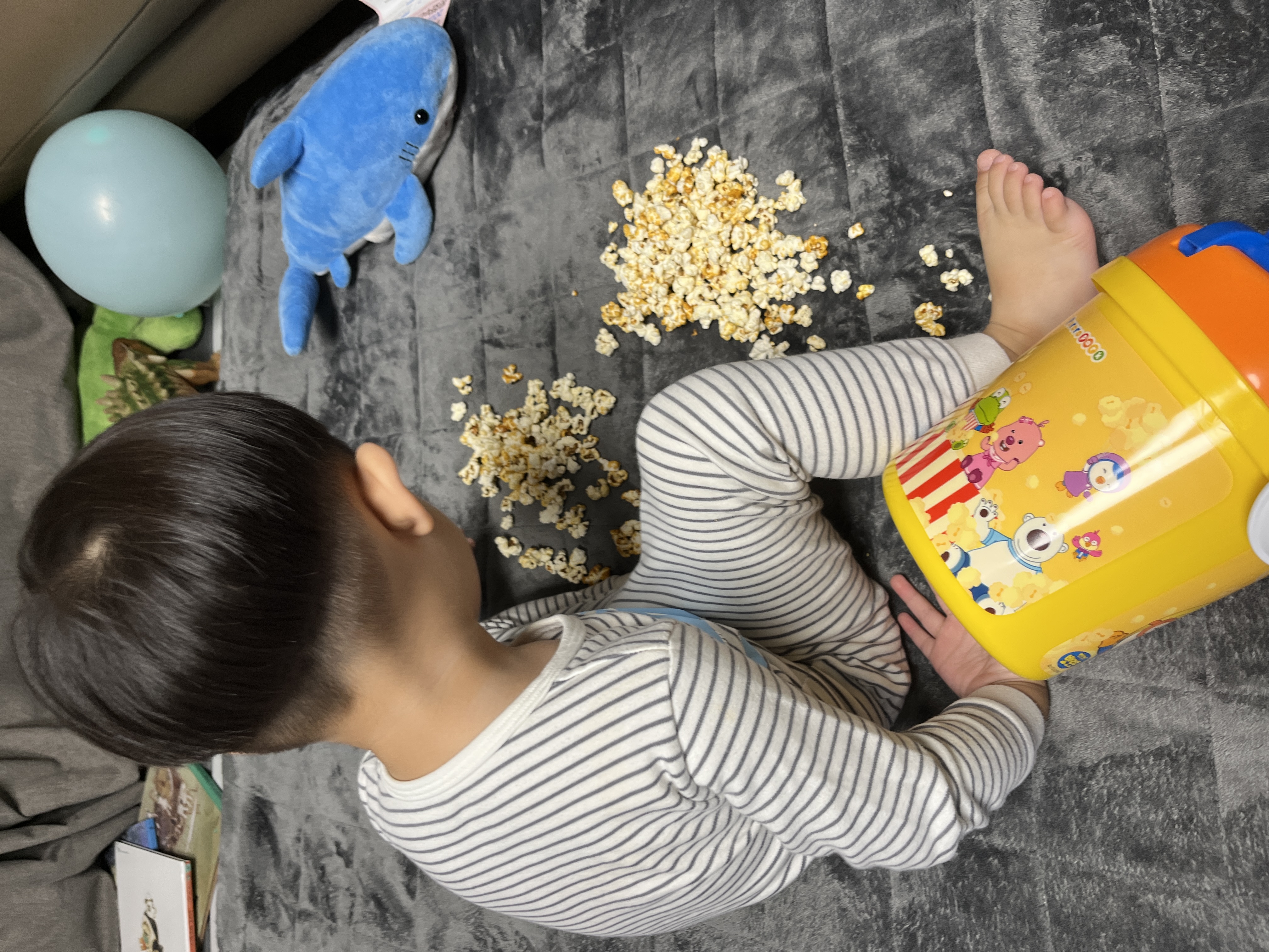 팝콘을 자꾸 쏟아서 버렸더니 아들이 오열
