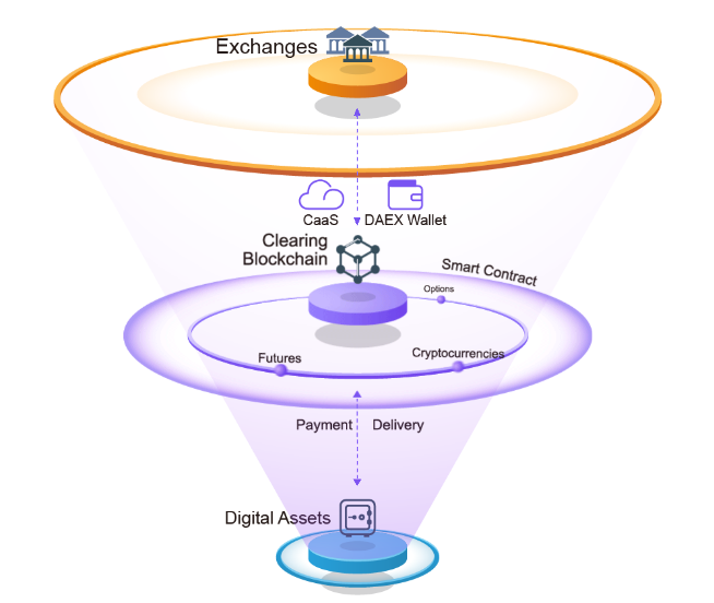 DAEX is a clearing solution for centralized cryptocurrency trading exchanges. Its clearing service is based on distributed ledger technology. Clearing and settlement rules are preprogrammed into clearing smart contracts on the DAEX clearing chain. The clearing process is automatic without people’ s interference. The objectivity of clearing is guaranteed by the consensus mechanism on the clearing chain. Also, customers’ digital assets are registered and stored on the DAEX’ s clearing chain. No other institutions or individuals can access these assets without the owner’ s permission.