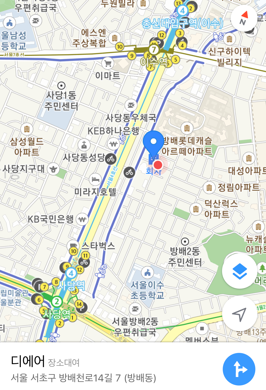 디 에어는 사당에 있군요! 집에서 완전 멀지는 않네요
