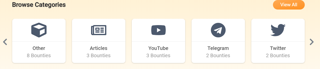 Once you open your account, you must connect with your MetaMask Wallet and than you can keep exploring and searching for an upcoming bounties based on the categories and the interest, or your own capabilities.