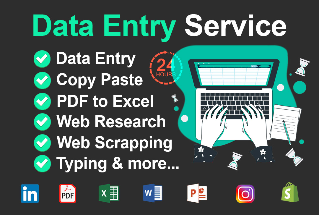 Do you need the Fastest and most professional virtual assistant for Data Entry, Copy Paste, Web Research, Excel Data Entry, Data Collection, Data mining, Data Entry Copy Paste Work, Typing, Image to excel, Data Scraping, Data Entry WordPress, Shopify Data Entry? YES! You are in the right place. I'm always here to help you.