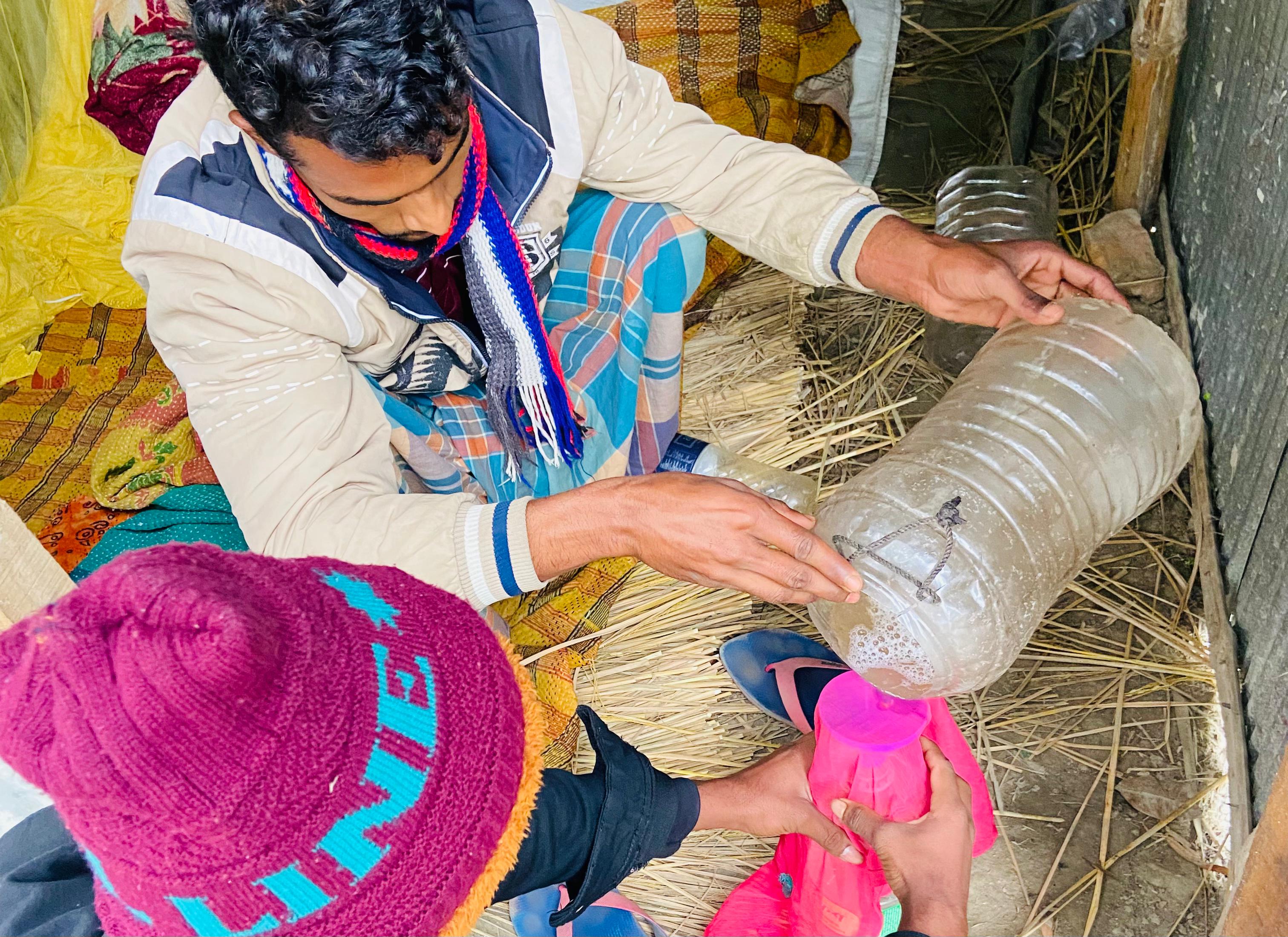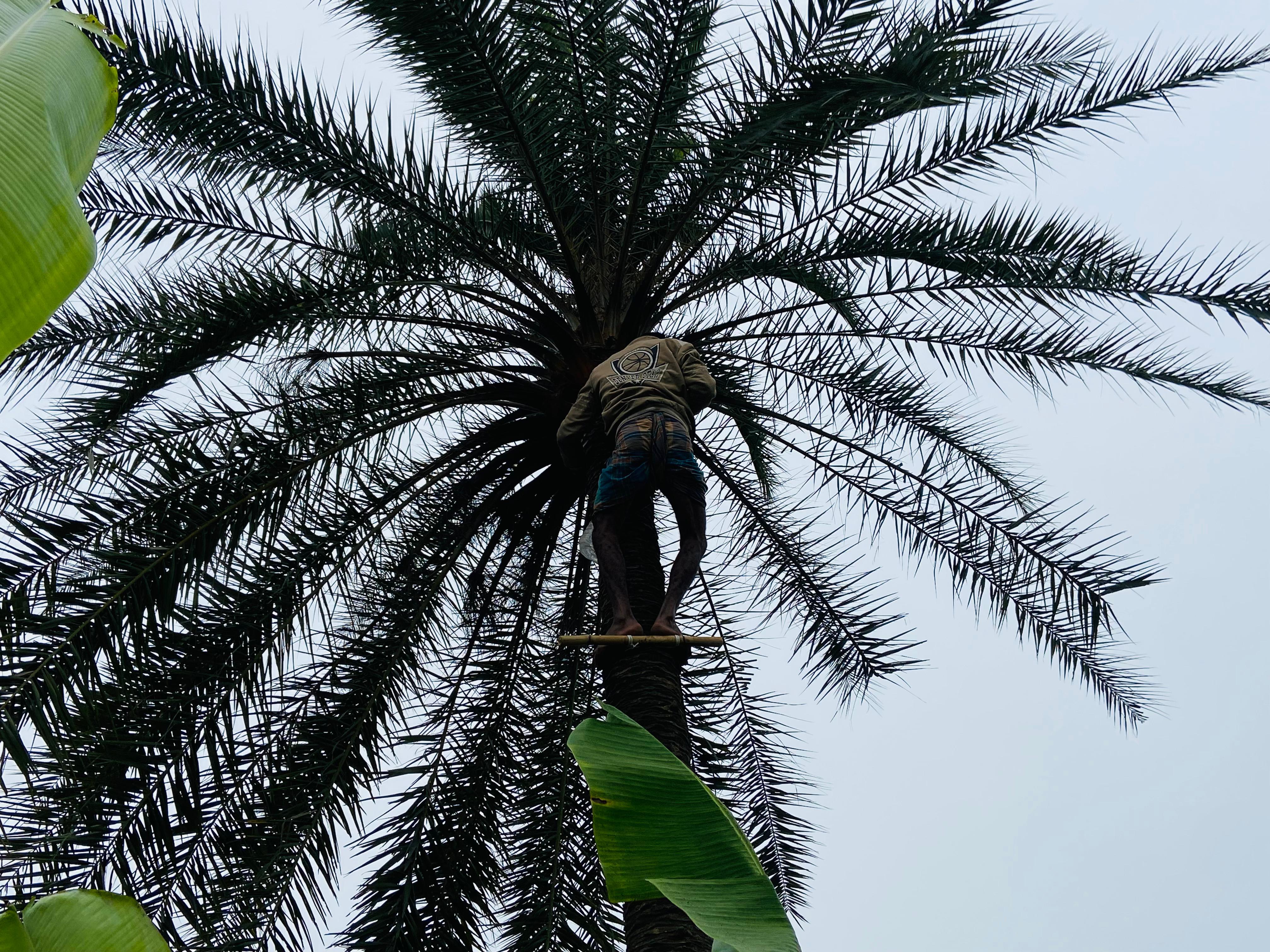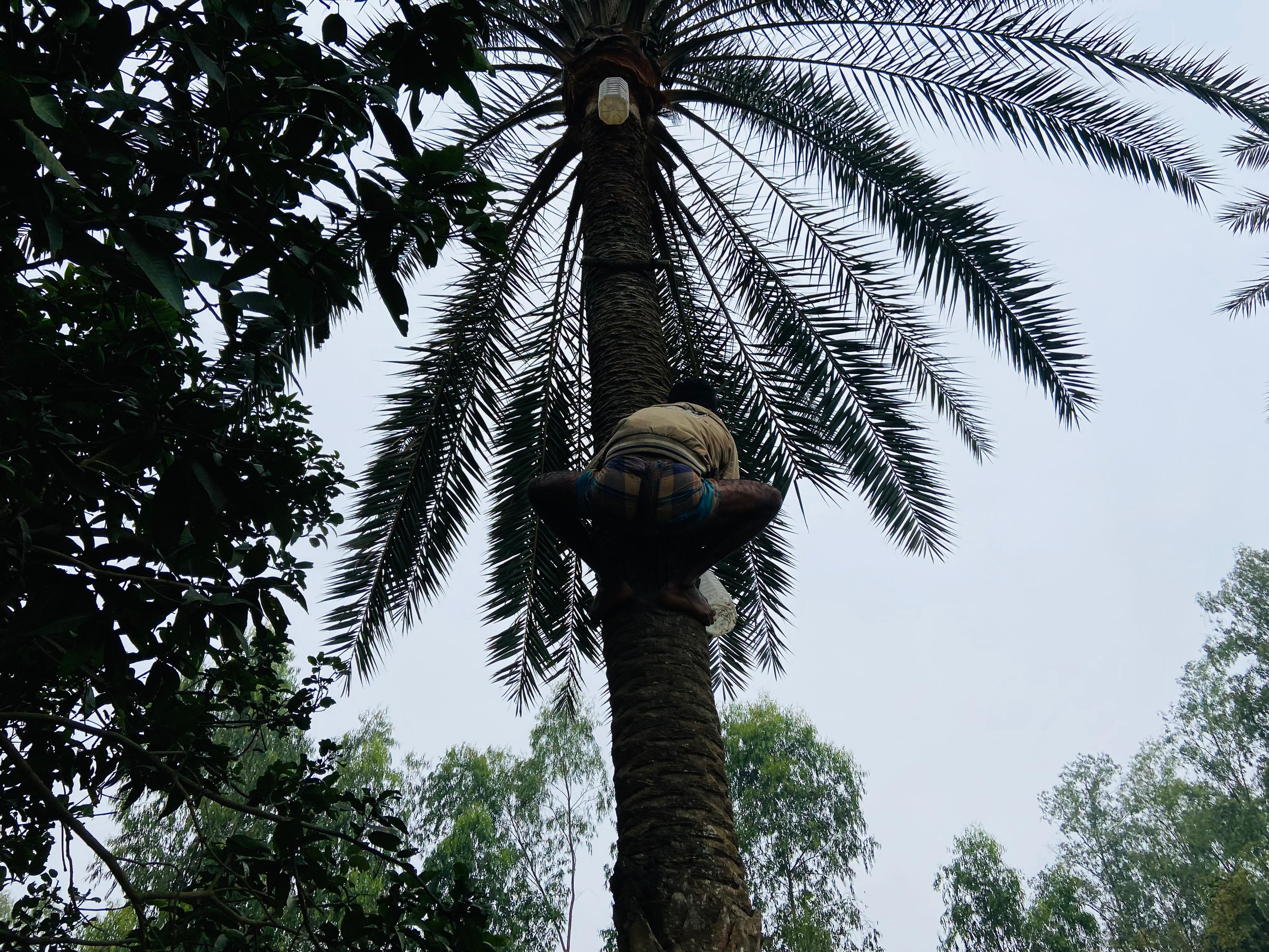 আমরা আমাদের বাইক নিয়ে একেবারে খেজুর বাগানের মধ্যে প্রবেশ করলাম। বাগানের মধ্যে প্রবেশ করে দেখতে পারলাম প্রতিটি গাছের মধ্যে হাড়ি লাগানো হয়েছে। বাগানের মধ্যে আমরা একটি ছোট ঘর দেখতে পারলাম, সেই ঘরের মধ্যে গিয়ে দেখলাম বাগান মালিক ঘুমাচ্ছে। আমরা বাগান মালিক কে ঘুম থেকে ডেকে নিয়ে আসলাম রস খাওয়ার জন্য।সব গুলো গাছের মধ্যে কিছু পরিমাণ রস পড়েছিল। বাগান মালিক আমাদের থেকে প্রতি লিটার খেজুরের রস একশত পঞ্চাশ টাকা করে ঠিক করে। আসলে এই খেজুরের রসের ফিক্সড কোন দাম নেই।একেক জায়গায় একেক রকম দাম। অল্প কিছু সময়ের মধ্যে বাগান মালিক খেজুর গাছের মধ্যে উঠে পড়ে।এক এক করে বেশ কয়েকটি গাছের মধ্য থেকে খেজুরের রস পাড়ে।