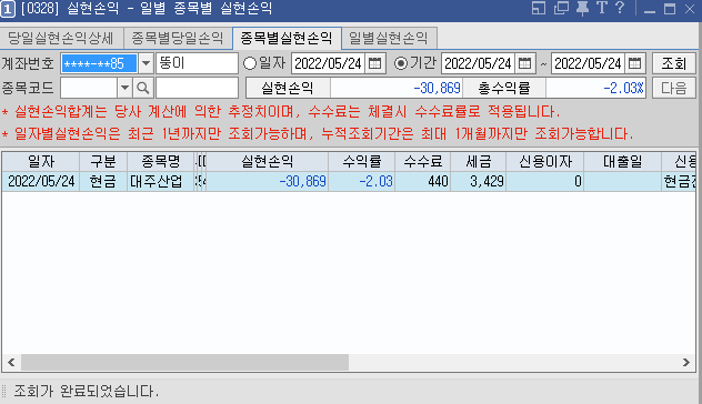 2022.05.24 매매소감patric101 (44)in #dblog • 4 years ago 안녕하세요 뚱이 입니다. 다들 매매 잘 하셨나요? 미국 야간 선물 흐름이 별로 좋지 않아서 우리나라 시장도 그에 반응하는 모습이었습니다. 오늘 매매한 종목 : 대주산업 입니다. 중간에 탈출 기회를 한번 줬는데 일하고 있어서 못보다가 대응을 늦게해서 손실이 났습니다. 내일이나 모레 다시 매수를 해보려고 합니다. 화요일 고생 많으셨습니다~^^ #zzan #krsuccess #koreastock
