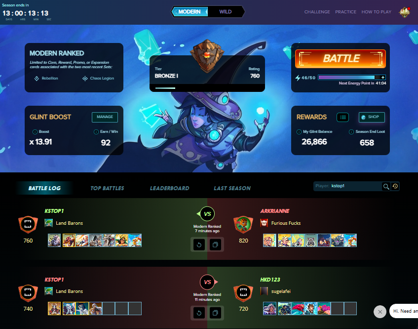 [Splinterland] 오늘의 Glint 보상smonkstop1 (62)in #dblog • last year 시즌 종료까지 13일 0시간 남았습니다. 오늘도 배틀로 Glint를 모았습니다. 모은 Glint로 DRAW를 1개 구매해 봅니다. Open 결과는 이상입니다. #zzan #battle #spt #splinterland