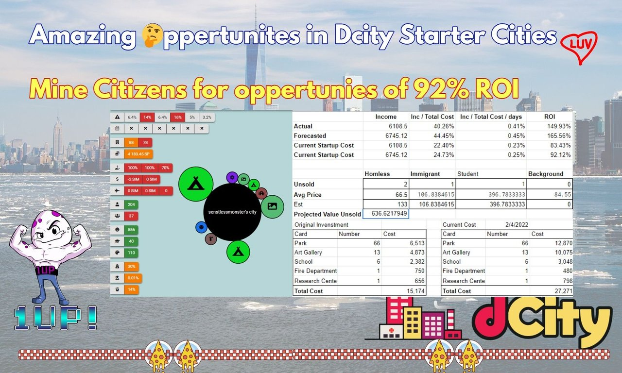 Starter City Senstlessmonster Update - Ignore Income and Taxes - Mining Citizens is still great ROIsenstless (72)in #dcity • 4 years ago #nft