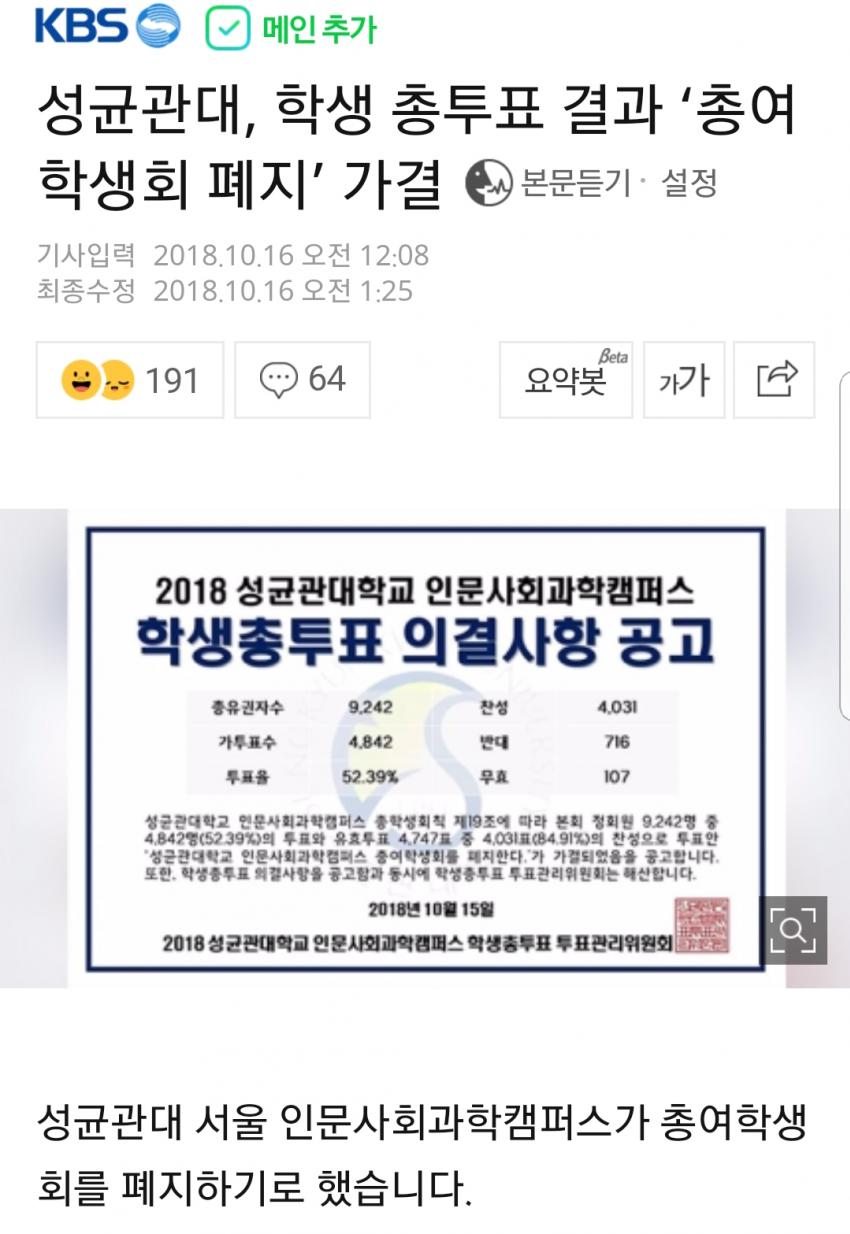 성균관대 총여학생회 폐지 가결. 사라져가는 구시대의 유산.
