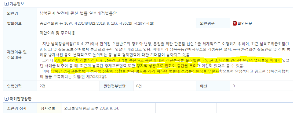 참고로 대표 발의자인 송갑석 의원은 비슷한 시기에 납북자를 실종자로 바꾸자는 법안도 발의하였다가 여론의 공격을 받고 철회한 바 있다. 송갑석 의원 뿐만 아니라 납북자를 실종자로 바꾸자는 법안에 발의한 사람 중 한 명을 제외하고는 경제협력 건에도 같이 발의하였다. 6·25전쟁 납북인사가족협의회에 의하면 납북자를 실종자 또는 실향민이라고 부르는 것은 납북자의 존재를 부정하는 북한에서 부르는 방법이라고 한다. 과연 이들이 어느 나라를 위해서 국회의원을 하고 있는지 궁금하다.