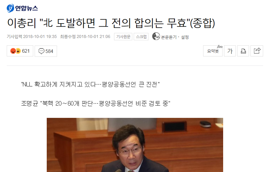 총리는 북한이 도발하면 합의는 무효라고 말하는데