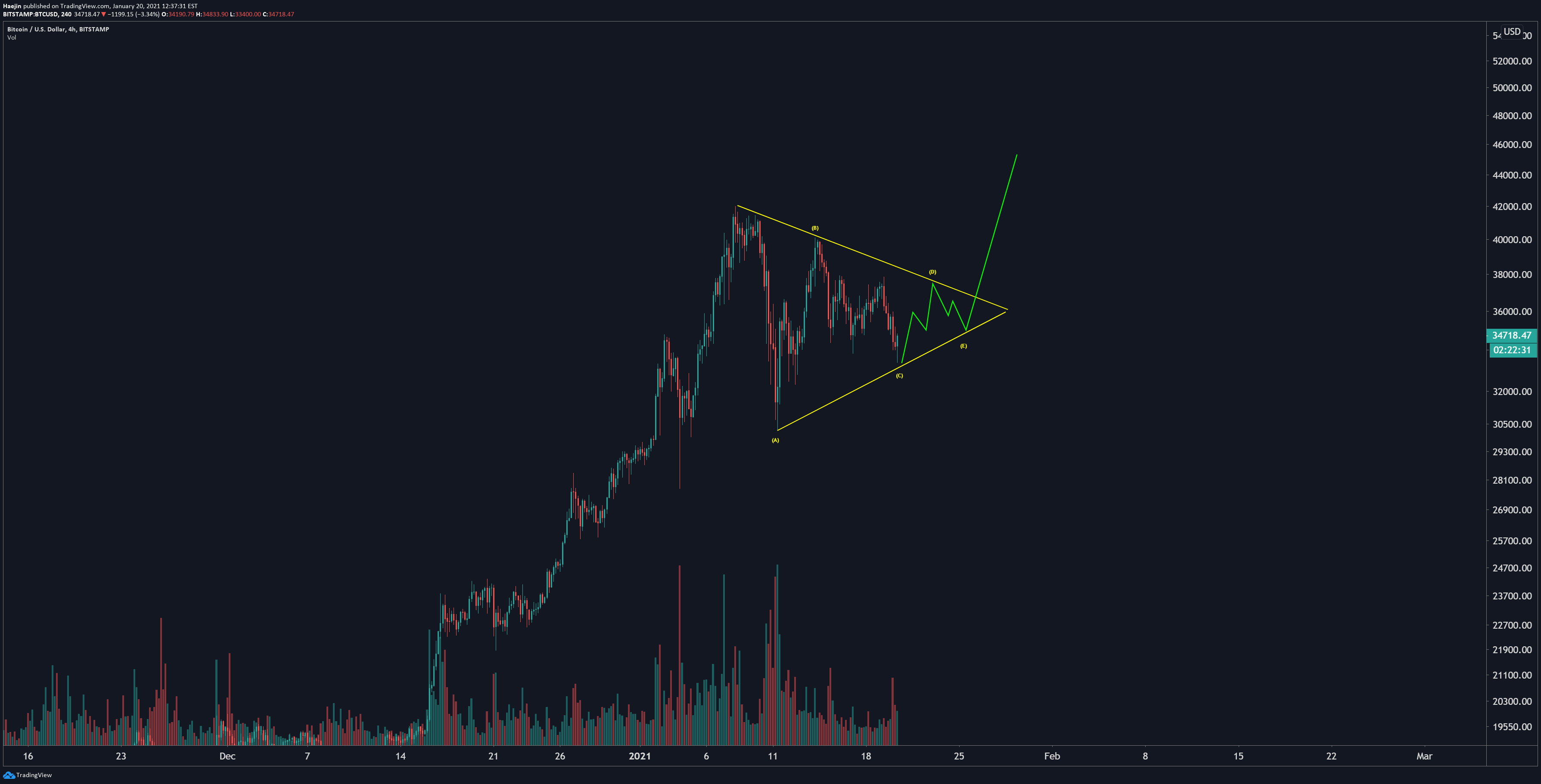 Bitcoin (BTC) Short Term Says Up!dcommerce (65)in #dcommerce • 5 years ago The symmetrical triangle is working it's way towards completiong. Since wave (c) of abcde is probably complete today; awaiting waves (d) and (e). Then, price should break the upper yellow line to the upside which would signal a significant buy!