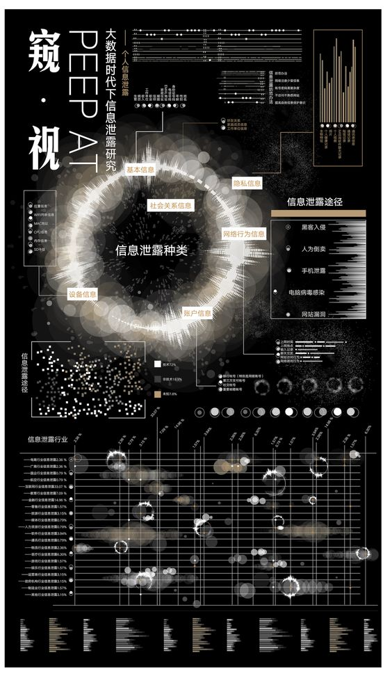 如今,数据已经渗透到各个行业和业务功能领域,成为重要的生产要素。然而在这个大数据时代,无论我们想做什么,似乎都有人在窥探我们的生活。事实上,信息泄露是技术进步的必然结果。尤其是互联网的出现,使得大量的信息的产生。近年来,在个人信息被各种主体窃取和利用的同时,因信息泄露造成的侵权、欺诈等信息犯罪也日益严重。该作品收集了 2002 年至 2019 年 3 月期间公开报道的敏感信息披露案例。它展示了我们的信息数据是如何通过信息图表泄露的。