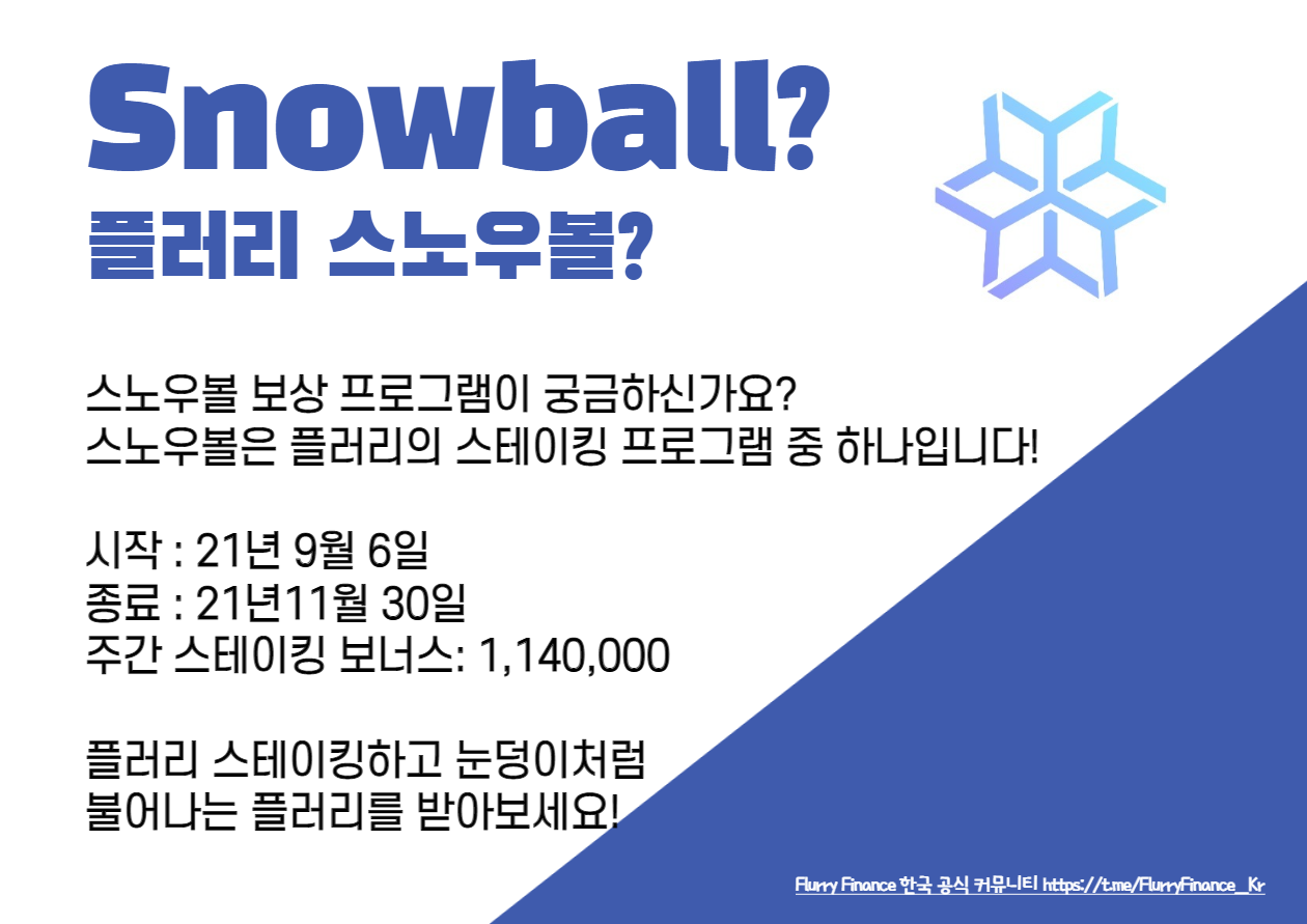 플러리의 스노우볼에 대해 아시나요?crazicat (25)in #defi • 4 years ago 플러리의 스노우볼에 대해 아시나요? 플러리 파이낸스의 스노우볼 프로그램에 대해 알아봤습니다!