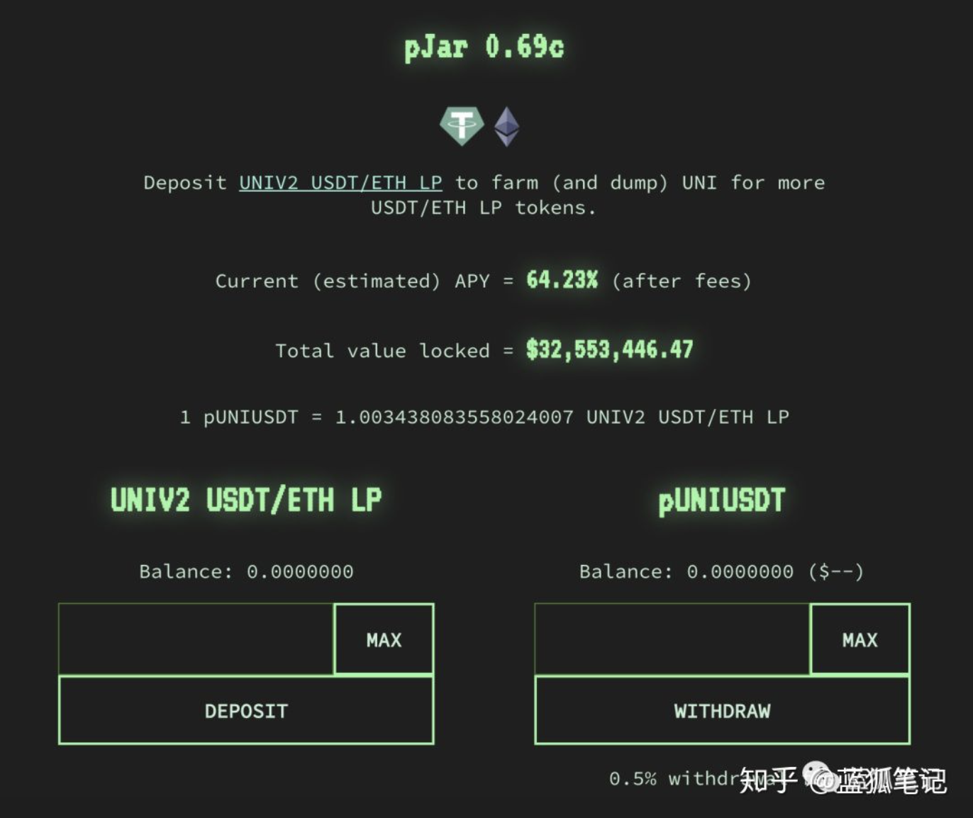 Recently, Pickle has continuously launched aggregate mining of canned cucumbers (pJars) in an attempt to add value to PICKLE tokens, instead of being unable to retain liquidity under the crude mining distribution mechanism like the previous "food swap". Pickle’s canned cucumber is similar to YFI’s yVault. There are currently 4 aggregate mining pools, pJar0.69a\b\c and pJar0, with locked assets of more than $70 million. However, since the contract did not participate, participation must be cautious.