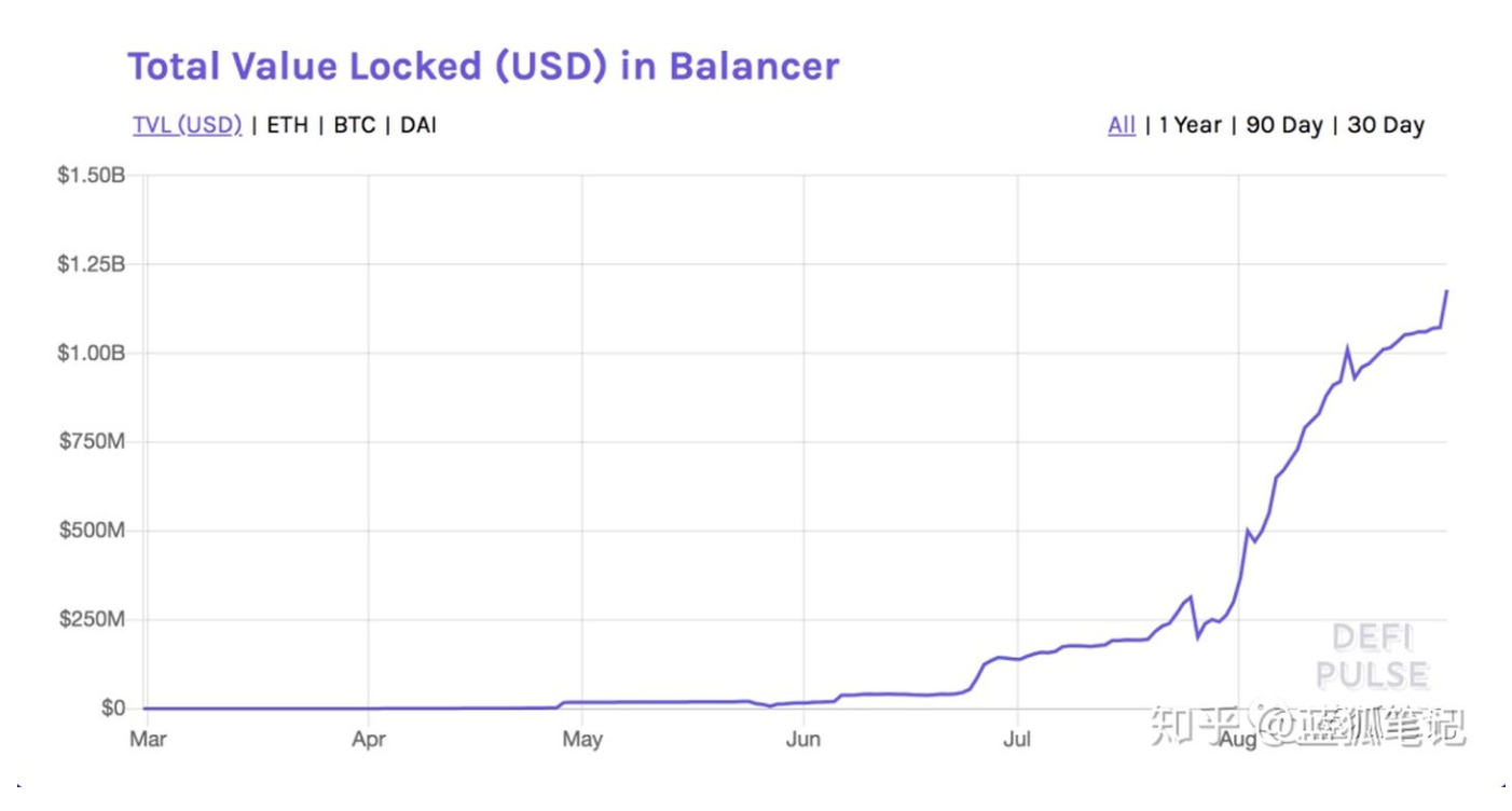 Blue Fox Notes has been paying attention to Balancer very early. Before it launched liquid mining, its liquidity was less than 20 million U.S. dollars. Now Balancer has more than 480 million U.S. dollars in liquidity. Balancer's liquidity token pool has an adjustable weighting factor, and a fairer token distribution can be achieved through weight adjustment.