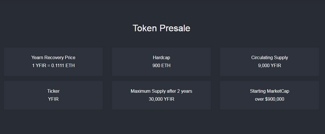 토큰 사전 판매는 https://bounce.finance/를 통해 수행 되며 사전 판매 시작 전에 배포됩니다. 프리 세일이 종료 된 후 Uniswap Liquidity 1000 YFIR 및 ETH에 상응하는 금액에 할당됩니다.