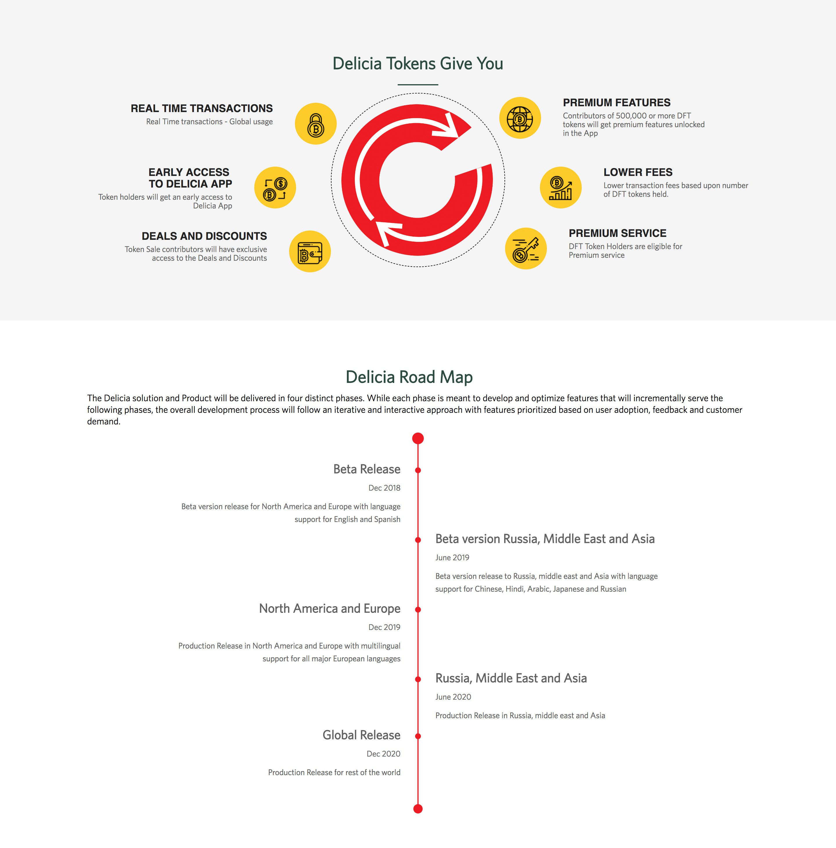 Delicia token 보유하고 있는 사람은 app을 사용할 때 누구보다 빠르게 서비스 받을 수 있으며, 토큰의 보유한 토큰의 수량에 따라 수수료는 점점 내려갑니다. 그리고 500,000이상의 토큰 보유자는 프리미엄서비스를 받게 된다네요.
