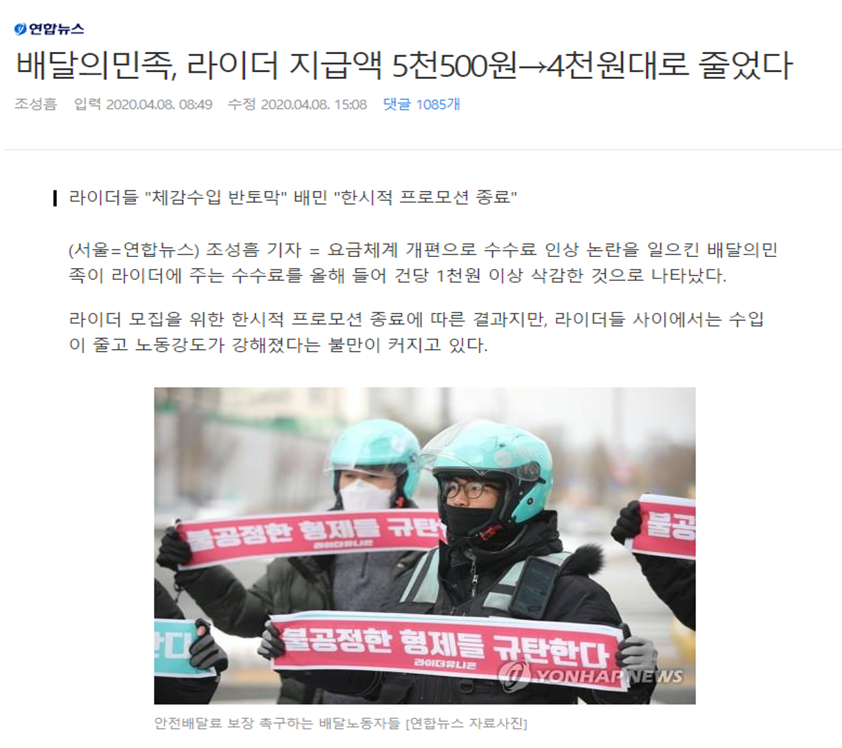 자영업들의 배민 수수료를 정액제에서 건당 얼마로 인상을 하고, 라이더에게도 비용을 줄이고 있습니다.