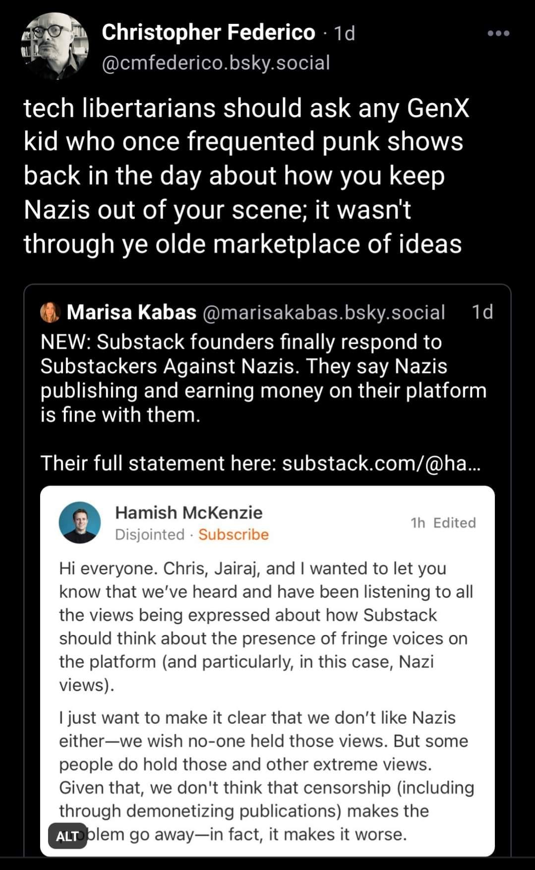 Substack and Nazi views.