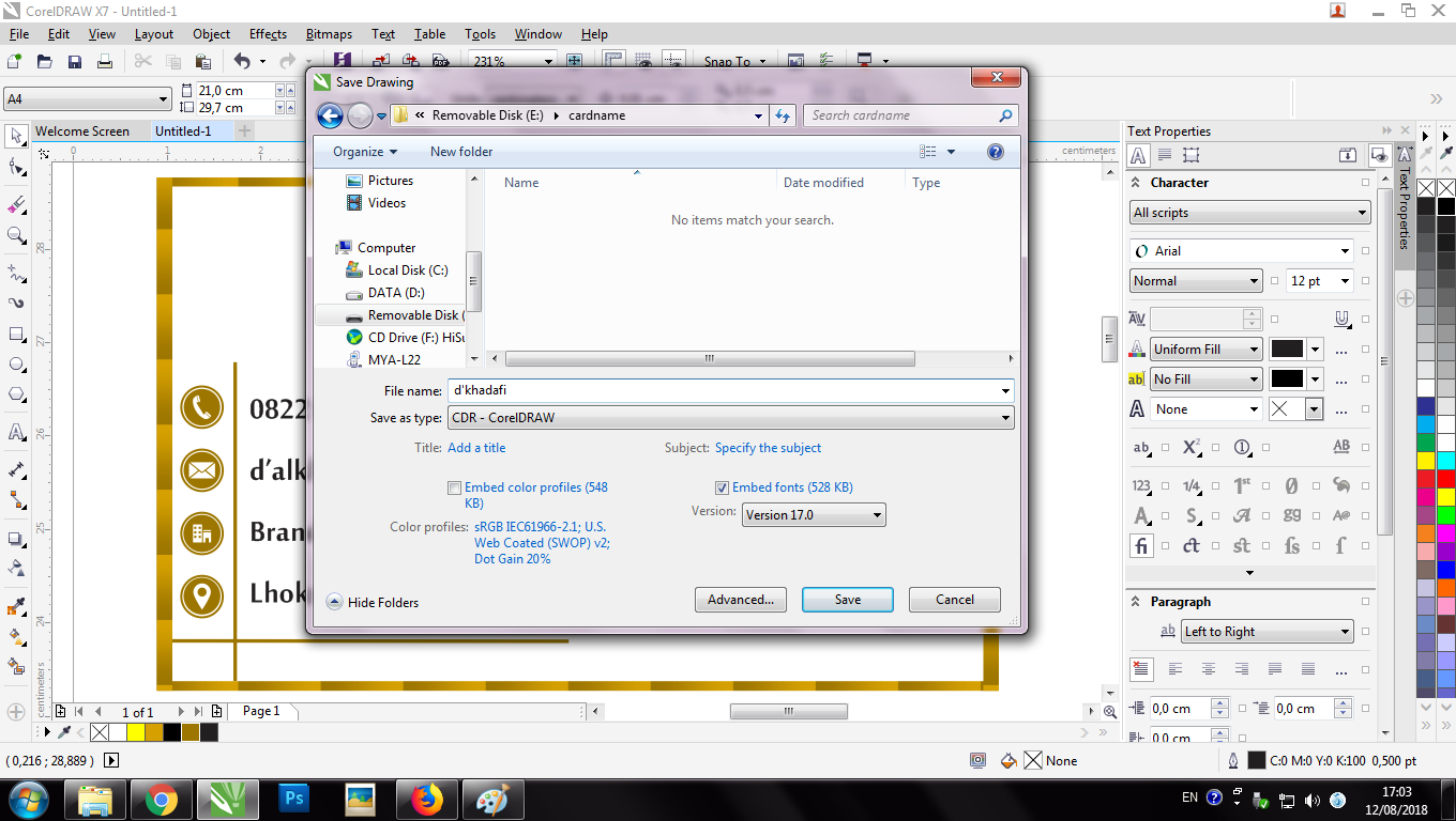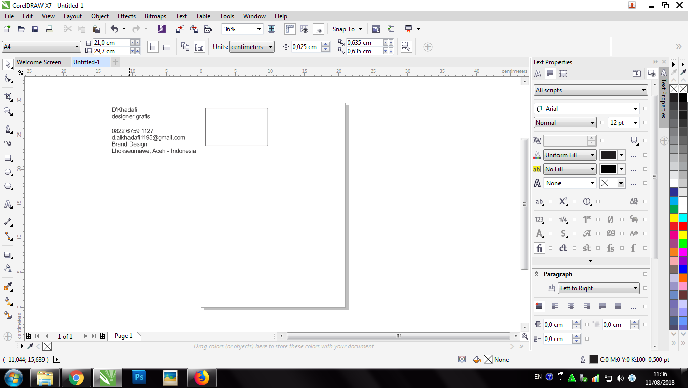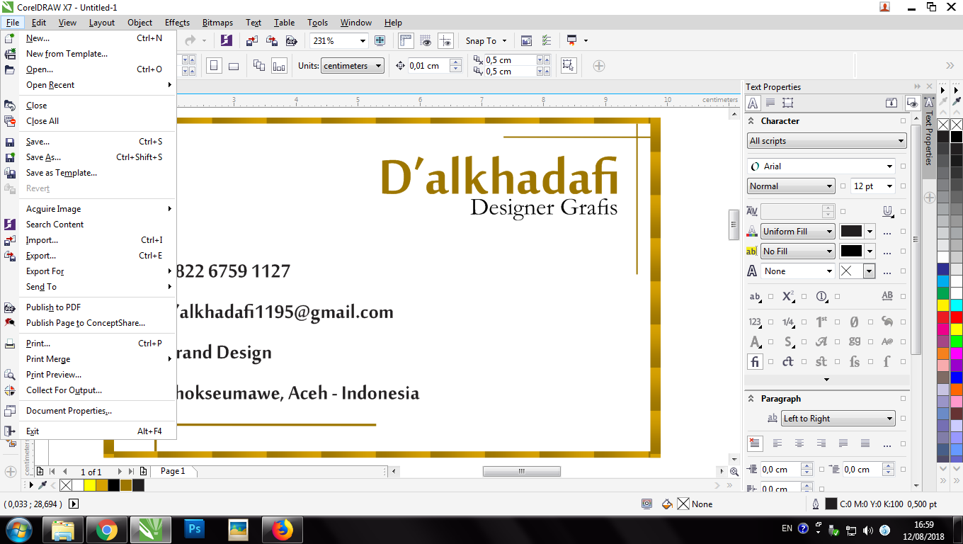 A Name Card is a card that conveys information about a company or individual that is submitted only as a reminder in a formal introduction. In general, business cards contain company names (including company logos) and postal addresses, telephone numbers, fax and e-mail numbers, websites. Traditionally, many business cards that use black text with a white background, but now many business cards use and apply striking aspects of visual design. Business cards are a must for a professional, and this time we will make a simple business card using the "COREL DRAW" application.