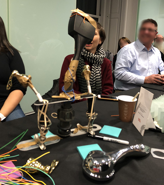 우선 이 단계에서는 주어진 재료로 새로운 것을 만들어보는것을 시도했습니다. 수도꼭지가 아닌 새로운것. 기존에 가지고 있는 사고를 깨뜨리고 새로운것을 물리적으로 만들어보는 시도를 하게 하였습니다.