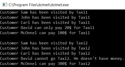 customer.Accept(taxi);