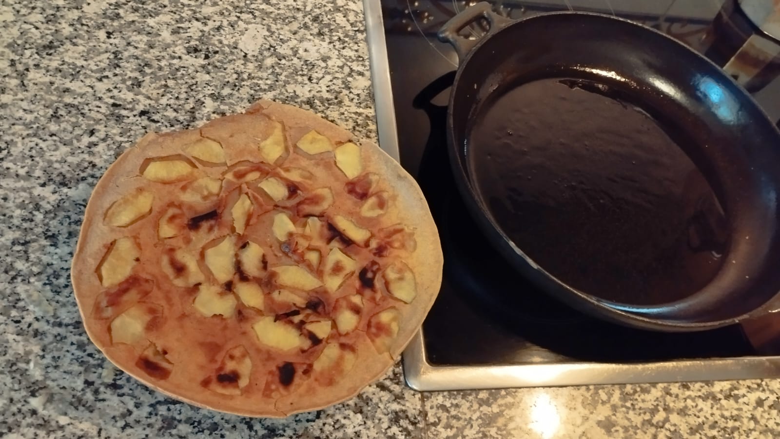 (der Pfannkuchen mit Apfelspalten und bittrerer Orangenmarmelade -ein rein andalusisches Produkt-)