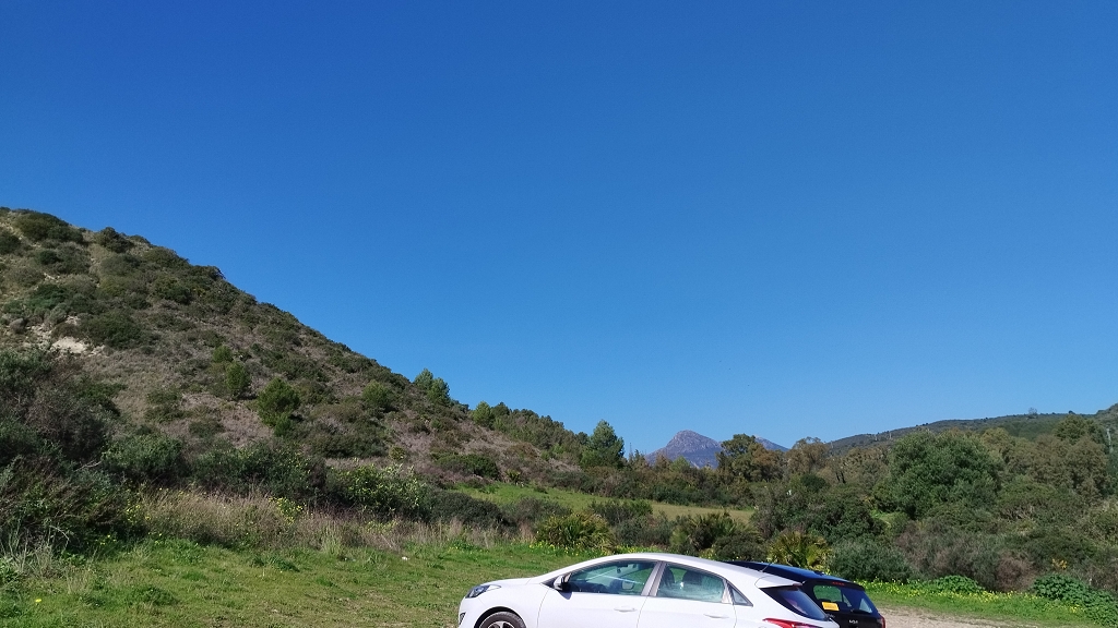 Es war wieder soweit, die Batterien mussten ans Ladegerät, also ab ins Auto auf einer Nebenstraße, die in D wohl eher Landwirtschaftsweg heißen würde, in die nahen Berge hinter dem Städtchen gefahren (4,5 km), Kiste geparkt,