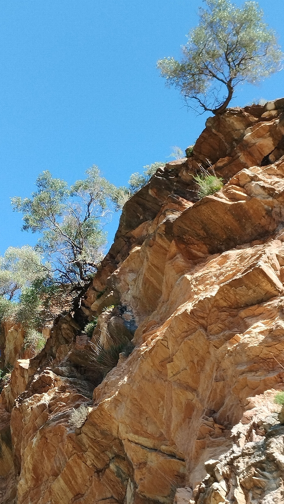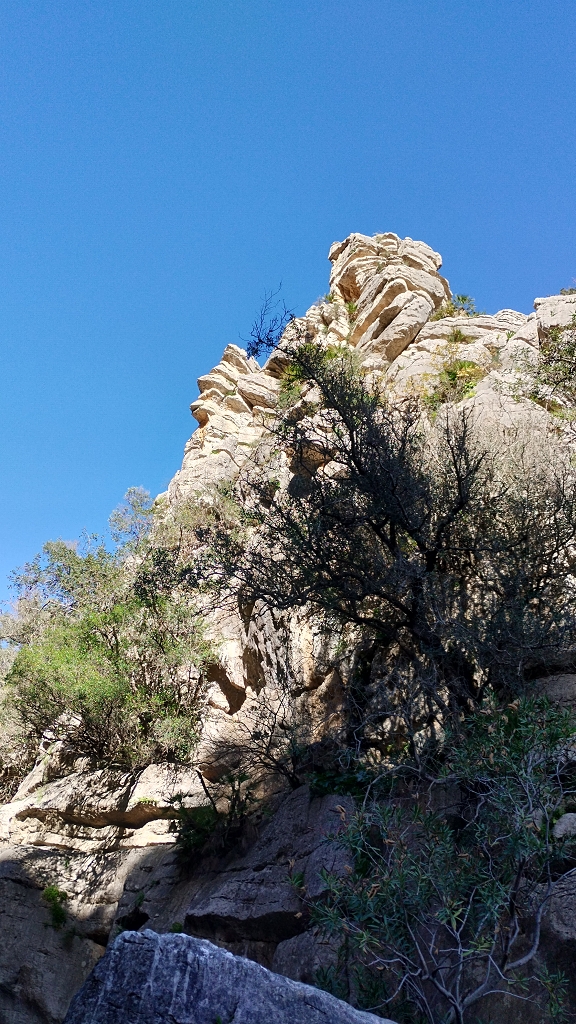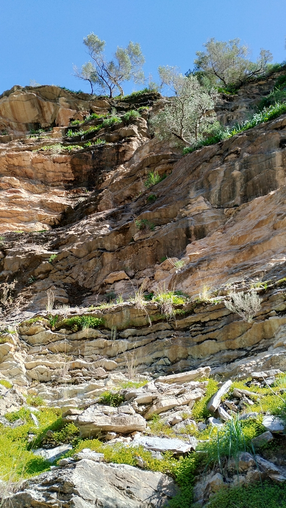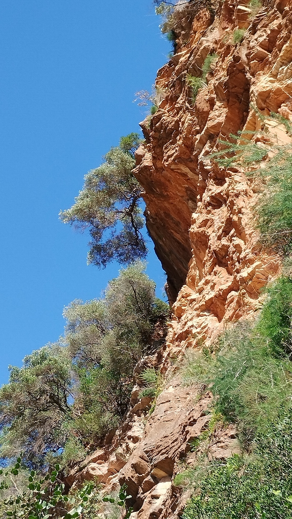 (und Zoom auf die Bäume da oben in und auf der Wand, uralte Natur, pur)