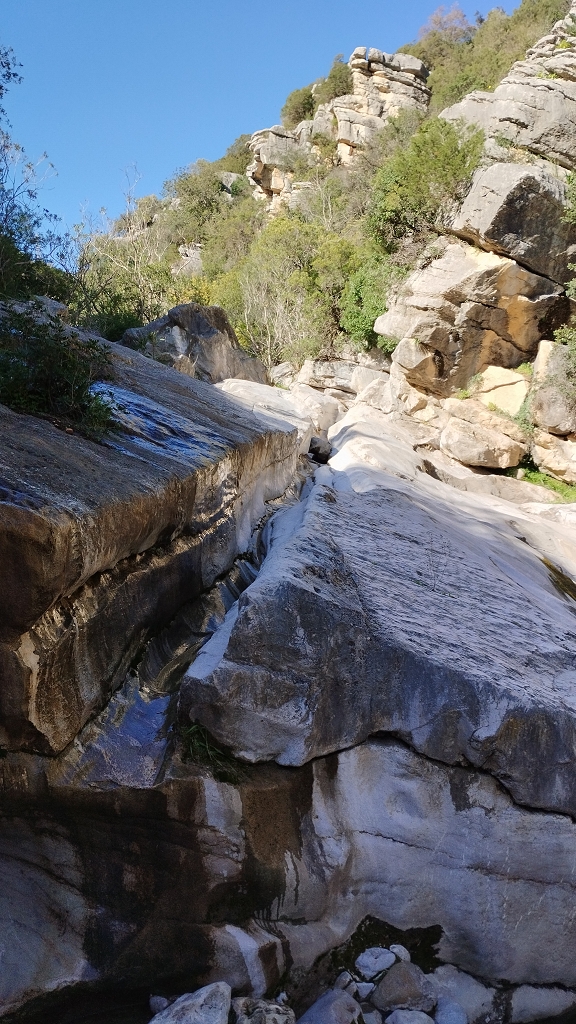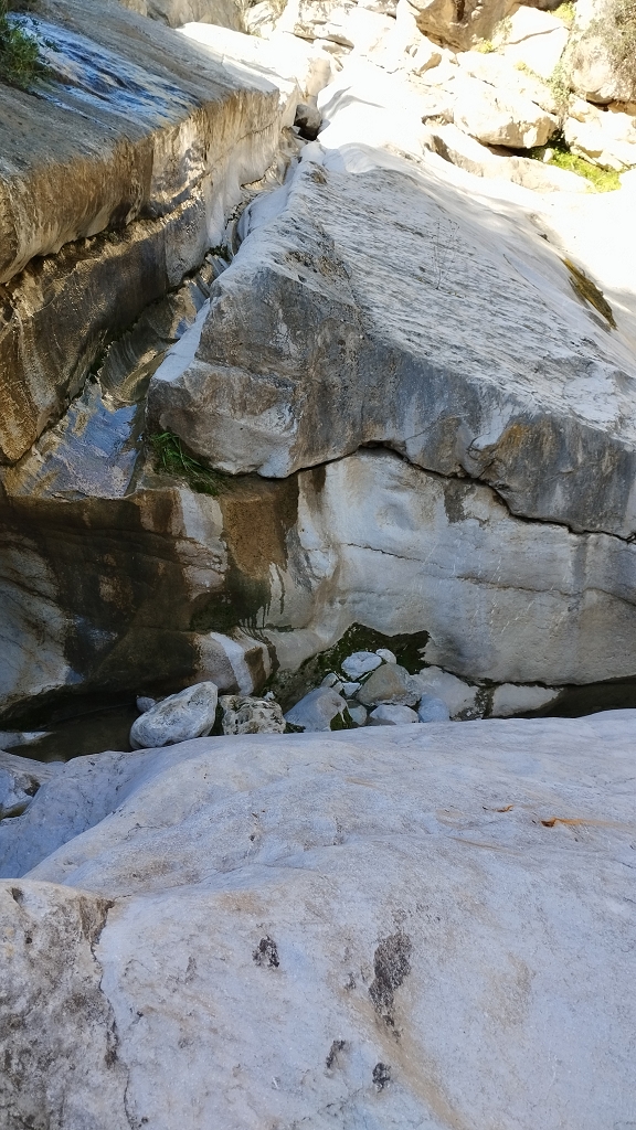 Es ging diesmal bis zu einer Stelle wo der Don, auf der nicht hundertprozentig trockenen Strecke und den Felsbrocken, das Risiko des ein oder anderen Fehltritts nicht mehr ausschließen konnte, weil es auch teilweise mehr als 2 oder 3 Meter fast senkrecht hoch ging, das würde mit der Ausrüstung einfach schief gehen, aber gut es gab eindrucksvolle Aufnahmen von uraltem Gestein, vom Wasser ausgewaschene Spalten mit bis zu 6 Metern Höhe, jede Menge fast unberührte Natur, und Null blöde belastende Gedanken, ach ja und einen leichten Sonnenbrand gab es selbstverständlich noch obendrauf.