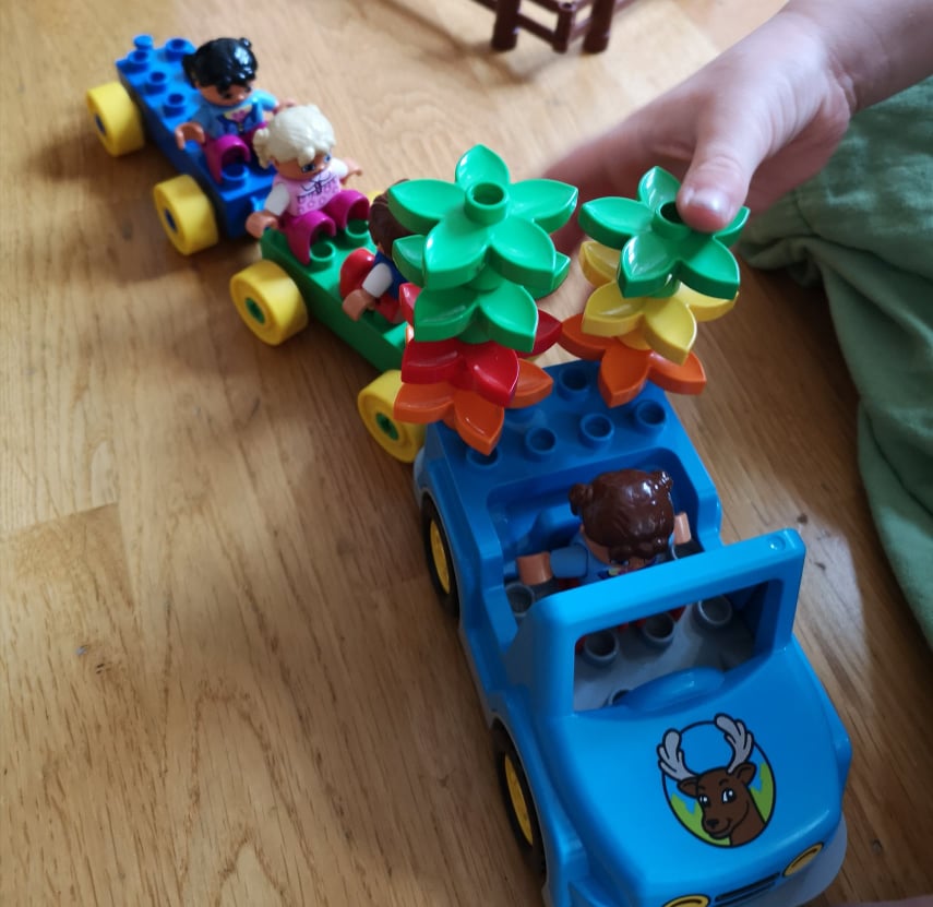 Es wurden alle möglichen Spiele angeschleppt und ausprobiert, mit der Großen habe ich Memory gespielt und mit der kleinen parallel Duplo. Danach Tierpark, Magnetspiele und ich weiß schon gar nicht mehr, was noch alles. Am meisten begeistert mich immer die Fantasie der Kinder, wenn Duplo-Figuren anfangen zu zaubern, Tiere zu sprechen uvm.