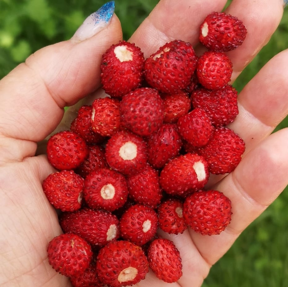 Hier möchte ich noch meine stolze Ernte von Mini-Erdbeeren aus dem Garten präsentieren. Es ist mir immer ein Fest, so eine Handvoll zu pflücken und an Ort und Stelle zu vernaschen. Das Aroma dieser kleinen Beeren ist der Hammer!