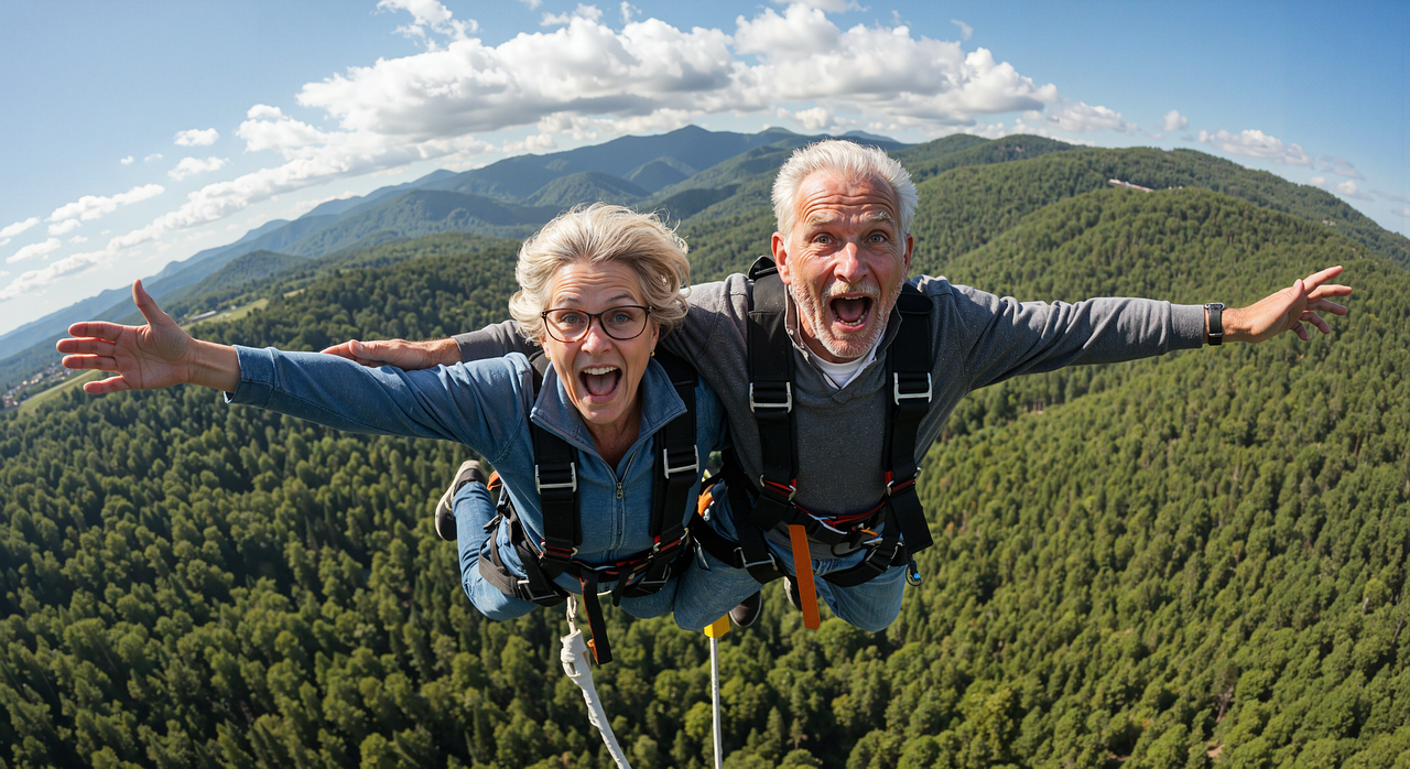 Nach nur einer Stunde mit Bildern von ineinander verschlungenen Saturn-Ringen in Form von Möbius-Bändern („Nietzsches Ewige Wiederkehr“, hörte ich Oberkünstler dazu anmerken, aber ich hoffe, ich habe mich verhört), von Oktopussen, die sich zu einem Peace-Zeichen angeordnet hatten (O-Ton O-Künstler: „Die Acht ist die Vereinigung aller Unendlichkeiten“) und von fliegenden Bergen, die wie Broccoli-Rosen über einem Ozean schwebten, aber bewohnt schienen, denn es befanden sich augenscheinlich Dörfer darauf („Der Traum der Siedler von Catan“, sagte diesmal nicht Oberkünstler, sondern Tytta), also nach nur einer Stunde mit vielen ungewöhnlichen bis unausstehlichen Symbolismen und Sprüchen, fragte Frizz wie aus heiterem Himmel: „Wie wäre es denn mit Bungee-Springen, so Arm in Arm als Pärchen? Geht nicht so was? Das verstehen unsere Follower besser.“