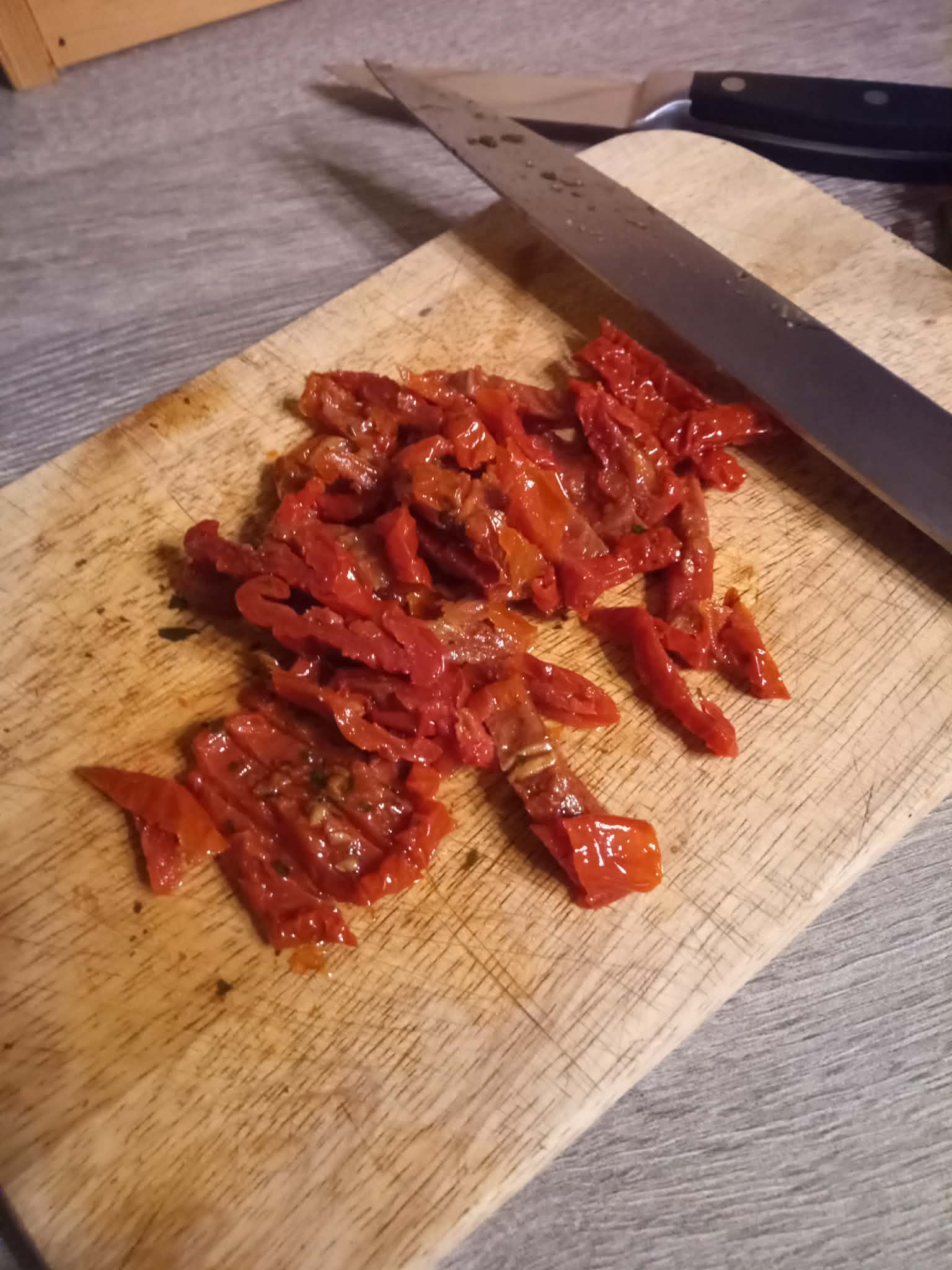 - Tomatenmark, Knoblauch, Chiliflocken, Thymian