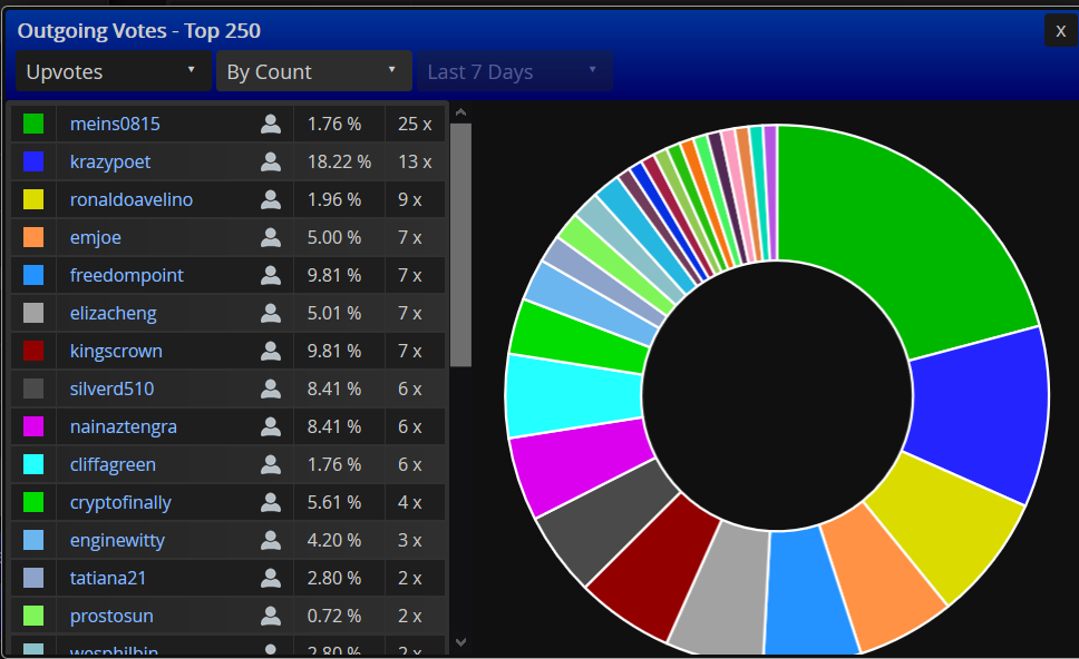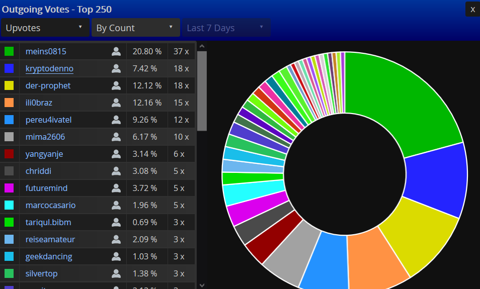 Munteres Kerlchen, votet bei mir in letzter Zeit SEEEEEHR fleissig. Ich schiesse da wohl alle paar Tage 1 - 2 STEEM hinterher um anständig bedient zu werden.