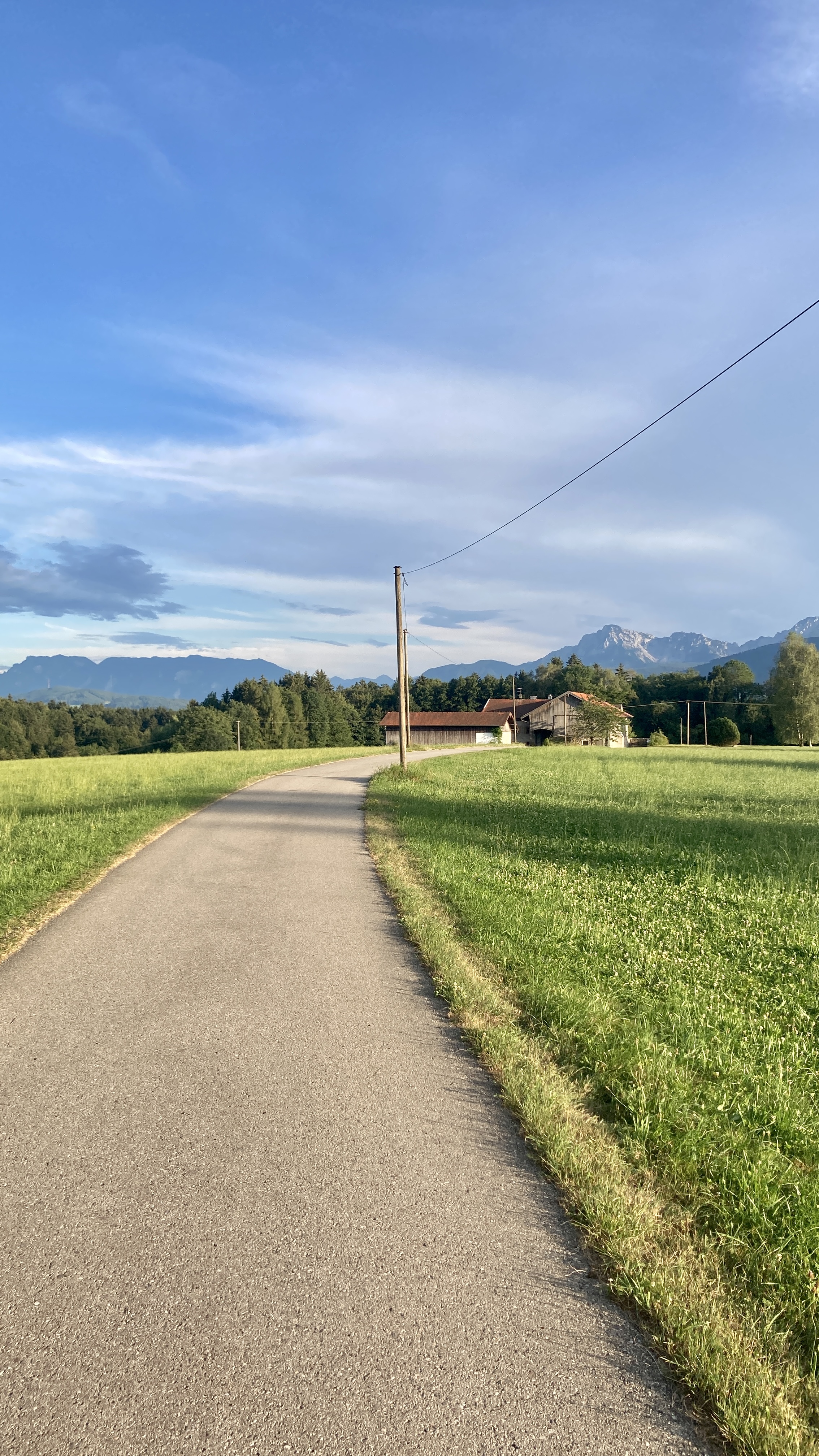 Entlang auf kleinen Bauernstrassen geht es weiter Richtung Ziel. Im Hintergrund dieses mal Untersberg und Staufen.