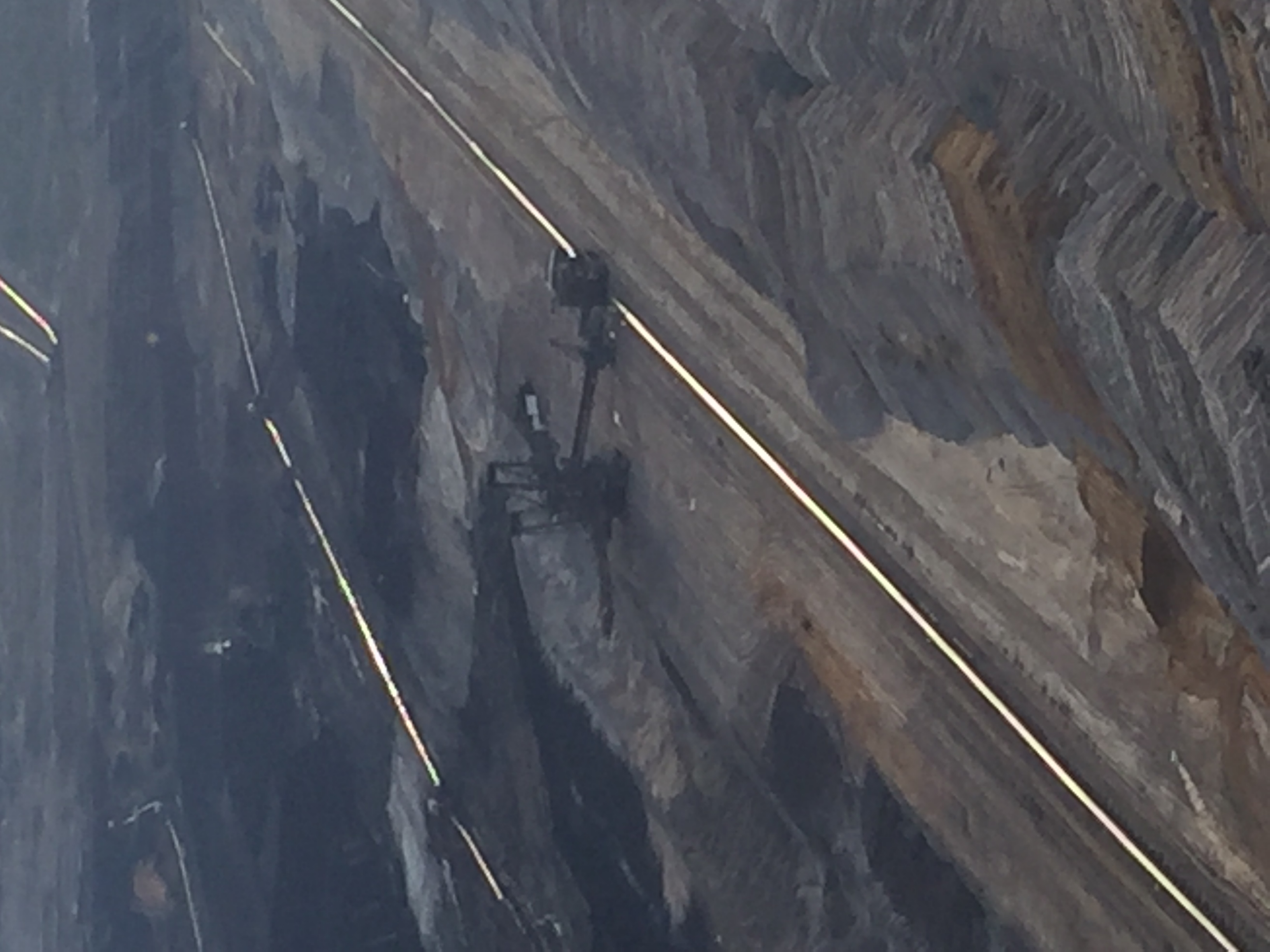 Der Tagebau Hambach ist treppenförmig angelegt. Auf jeder Treppenstufe arbeitet ein Bagger und trägt das Erdreich vor ihm ab. Erst auf den Sohlen 6 und 7 – den untersten Arbeitsebenen des Tagebau Hambach – liegt das Braunkohlenflöz.